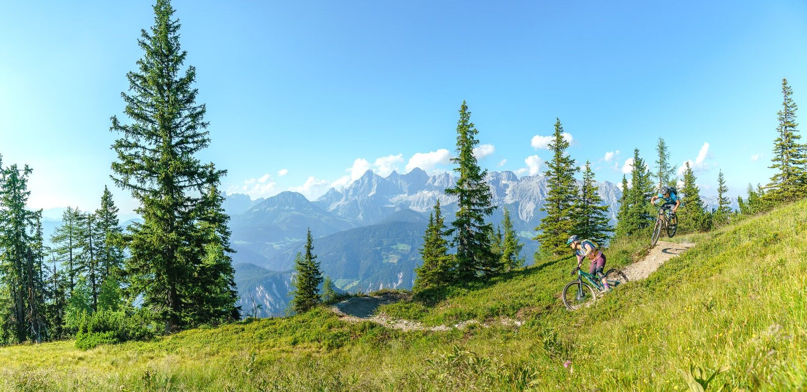 From the Preunegg Jet mountain station, a 1 km long and challenging ascent to the starting point of the Gassl Trail awaits. Once at the top, you are rewarded with an impressive panorama with a direct view of the Dachstein. Crossings beneath rock faces and tight bends will make your biker's heart beat faster. If you want to take a breather from all the adrenaline, this panoramic trail offers some very special photo spots.