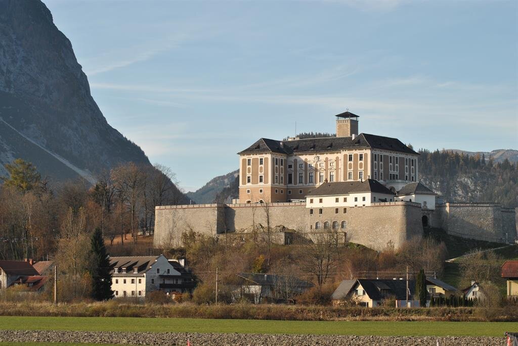 Below Trautenfels Castle, turn right at the parking lot and run back to the Irdning leisure center, which you can already see - a challenging but scenically rewarding loop for trained runners.