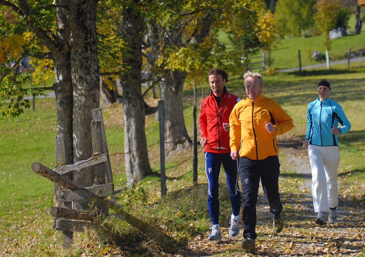 The Ramsau running routes are all signposted and marked in one direction. The starting point for all routes is at the WM cross-country stadium in Ramsau Ort. All routes are marked with numbers and a color. Each route is also equipped with kilometer boards.