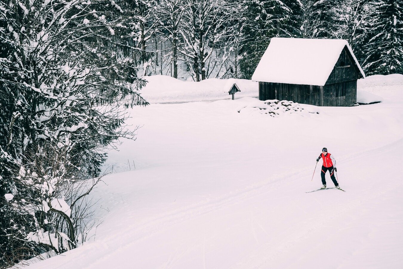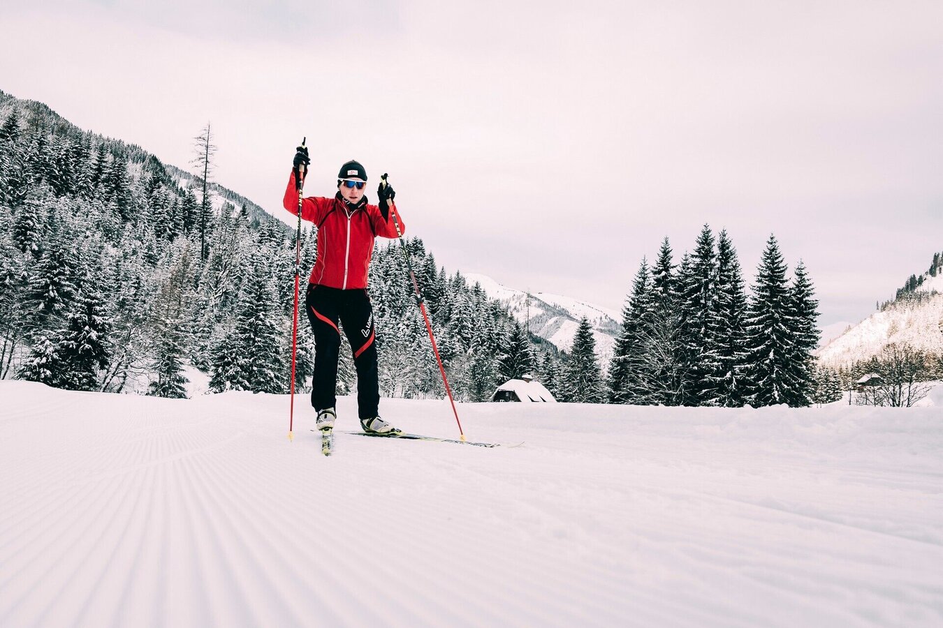 This trail takes you along fields next to the main road to the Steirersiedlung – crosses the road in front of the »Schaupphof« farm, where there is an option to switch to a trail back to the Riesneralm car park, or continue on towards the valley head to the Meng farm. From here it is only ca. 150 m to Hinterwald resort village with refreshment opportunities at the village inn (take off your skis, the trail does not go all the way to the village).