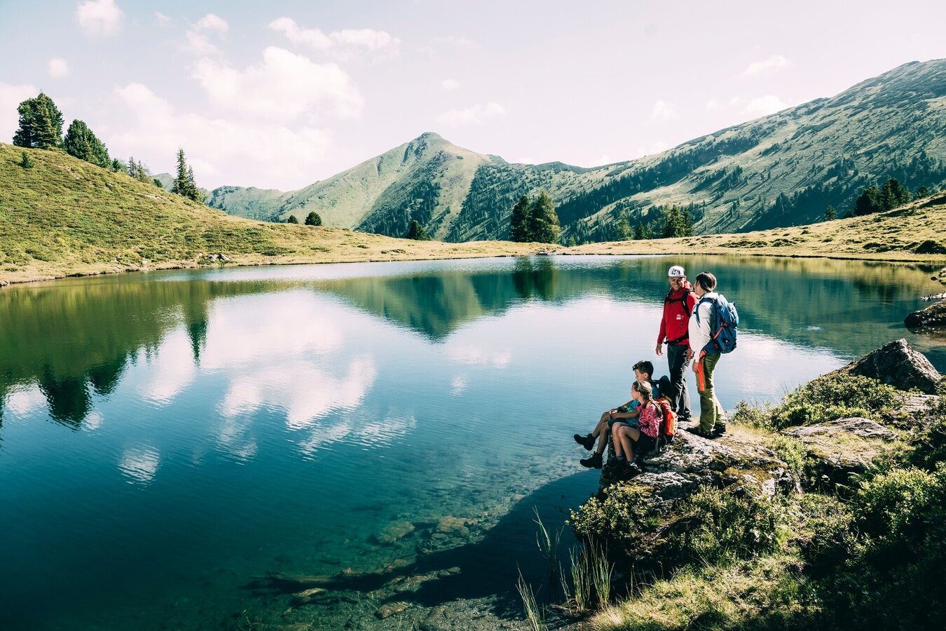 From the Michelirlingalm you have the possibility to continue hiking, to the right of the alp, first across a meadow, then over a steep path up to the Michelirlingsee (20 min). From there, turn right again in the direction of Hühnereck (30 min). The summit can already be seen from below.