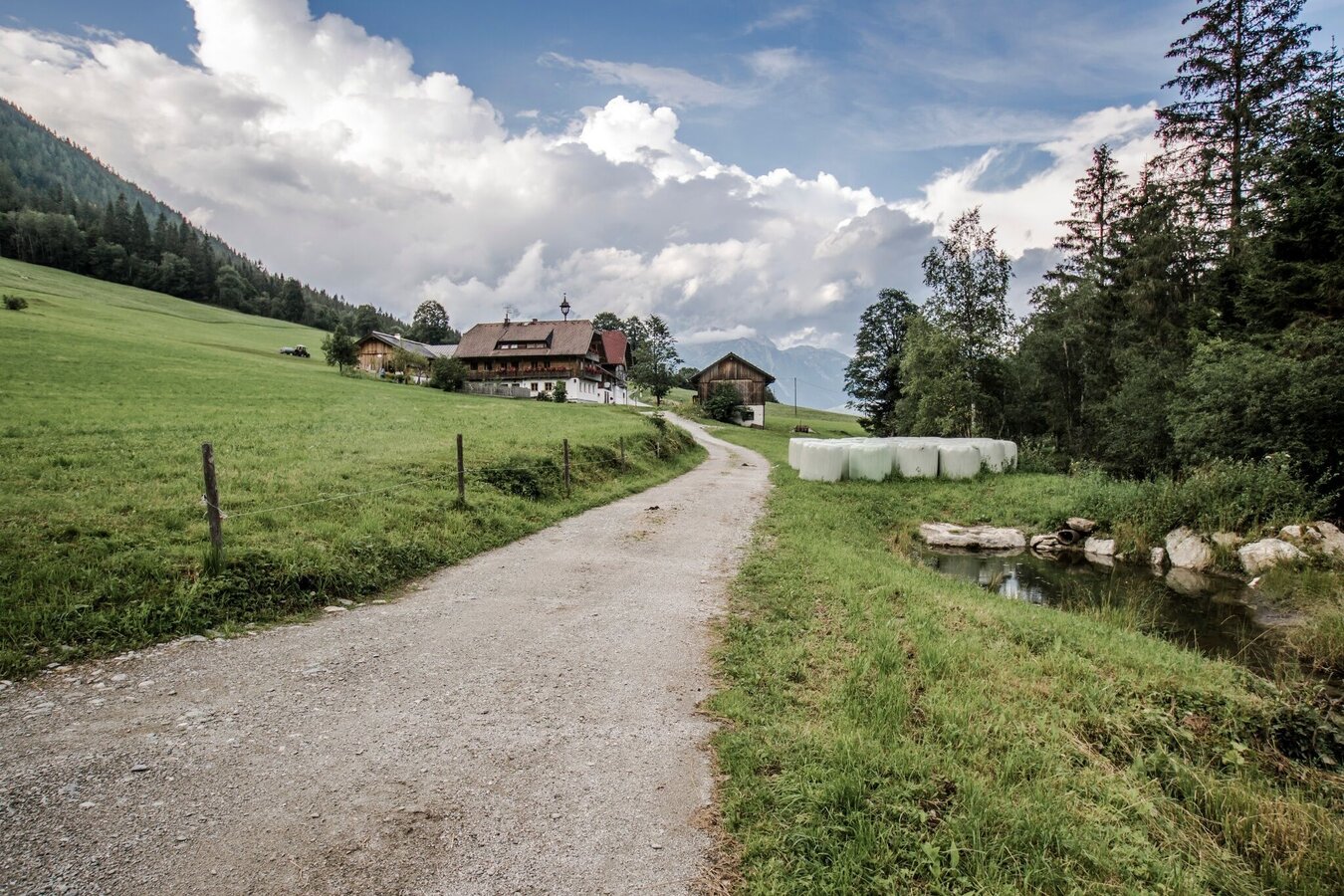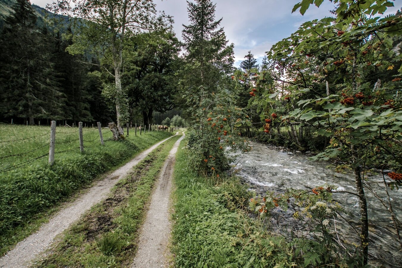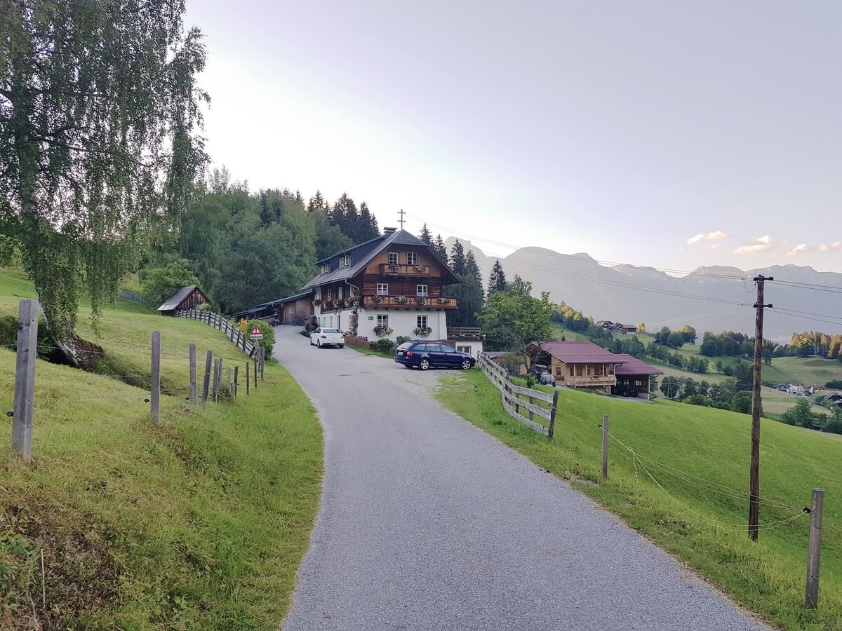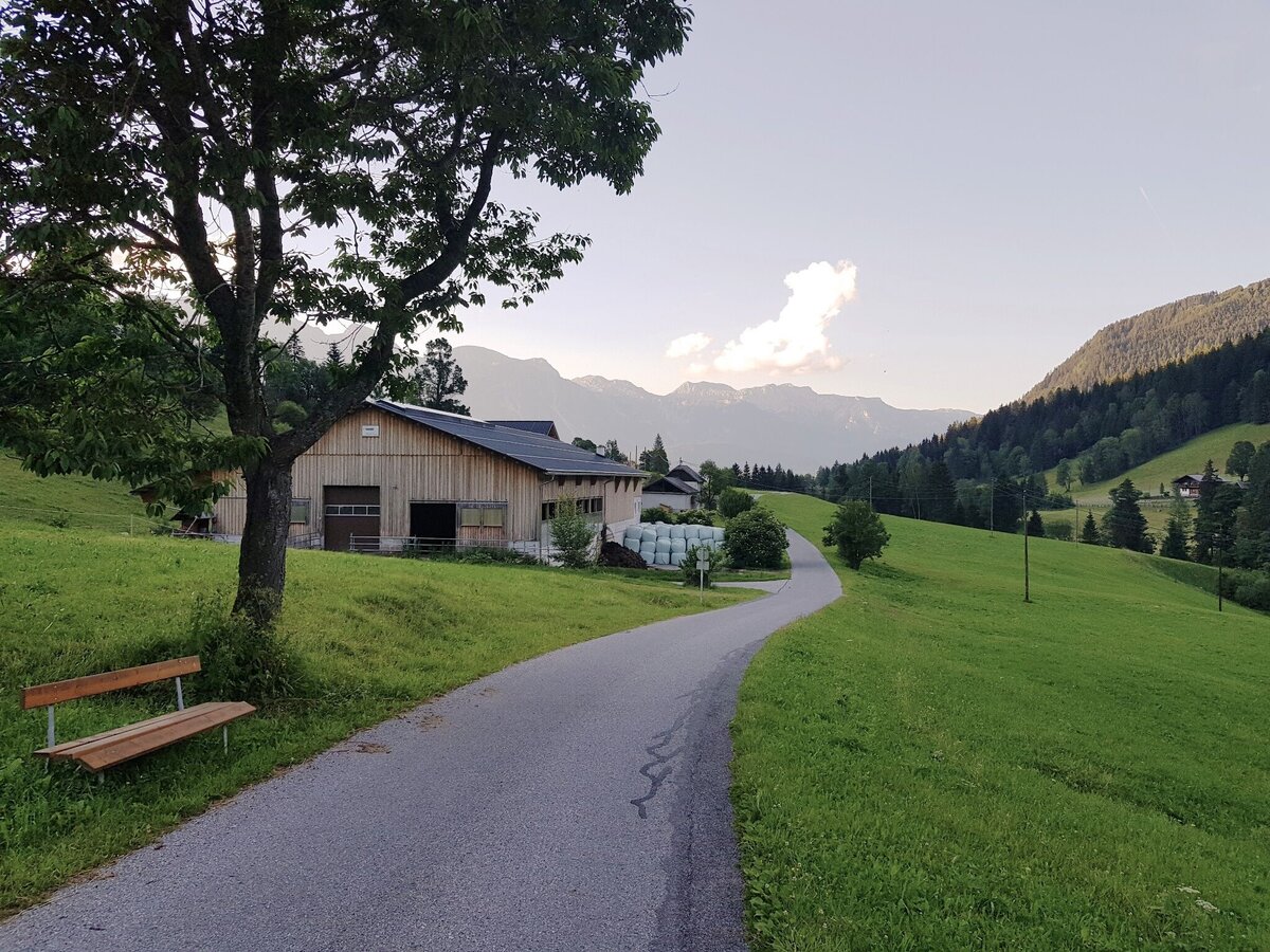 From the hiking trail head pass by the elementary school in Untertal and hike up to Ahornweg road. Passing some beautiful farms you hike into the Obertal valley. Once you reach Hocheggerhof farm follow the directions above.