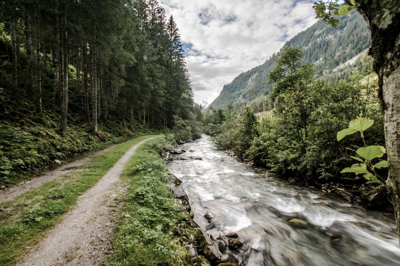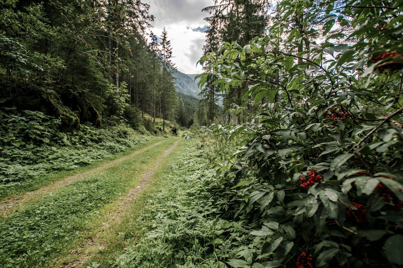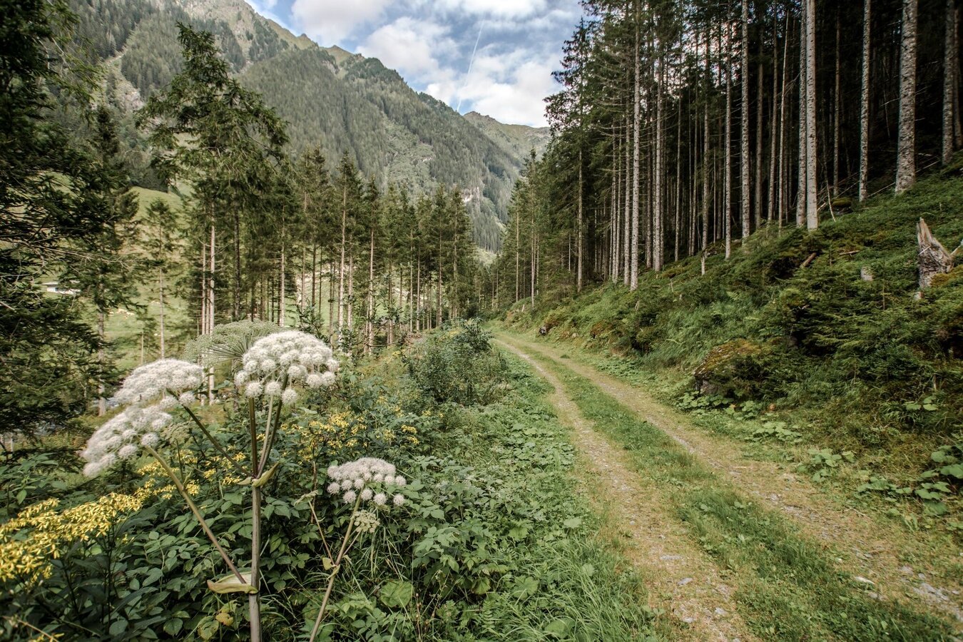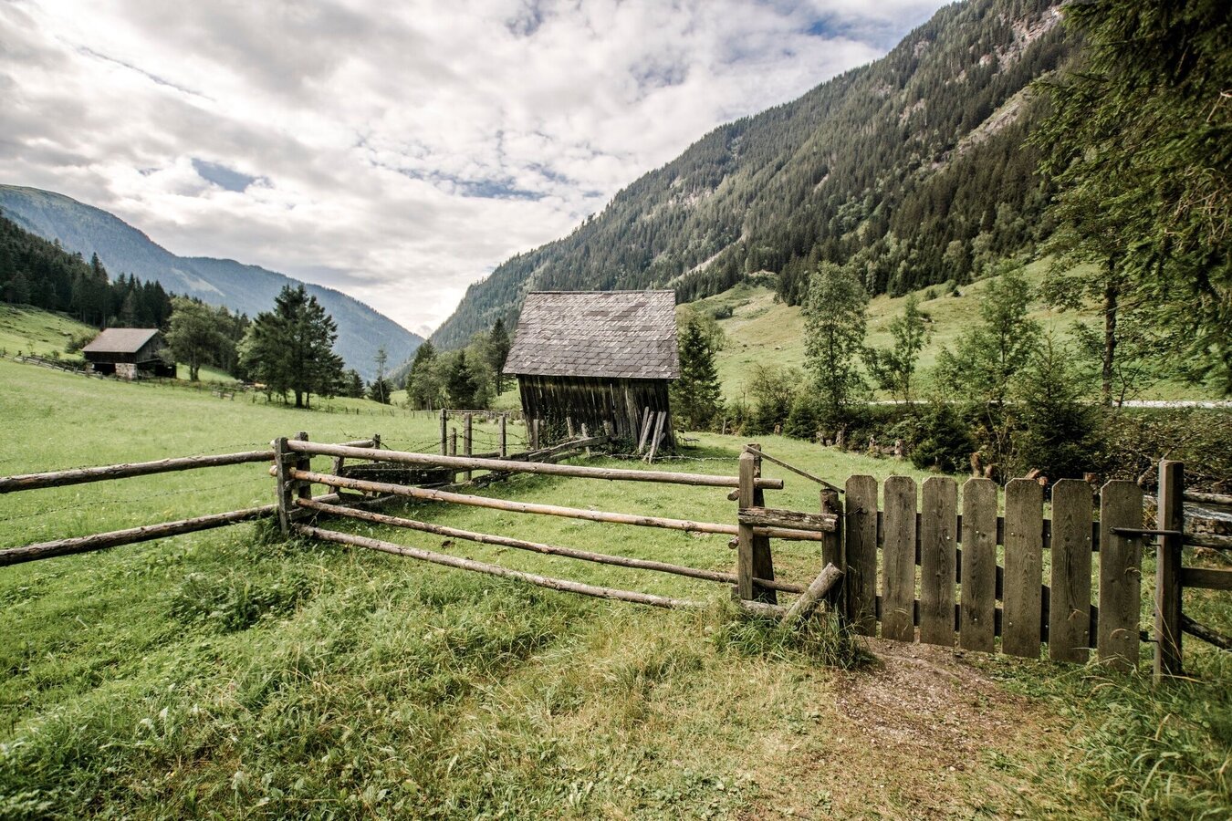 From the hiking trail head pass by the elementary school in Untertal and hike up to Ahornweg road. Passing some beautiful farms you hike into the Obertal valley. Once you reach Hocheggerhof farm follow the directions above.