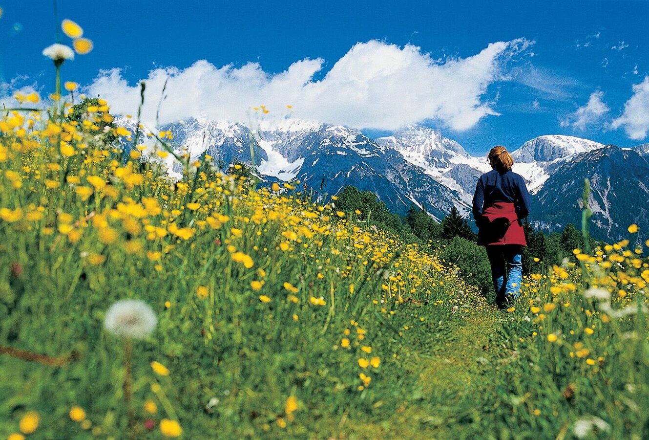 Heading towards the elementary school along the Ahornweg, you will pass many beautiful, traditional farms. The Dachstein massif at your back, the Schladminger Tauern, where the miners once dug for silver and nickel, before you. Follow the stream into the valley – and along the way, a perfect opportunity to cool off your feet in the cool, wet water. Hiking on to the Nickel Museum is definitely worthwhile. Ambitious hikers can add an extra 30 minutes by going to the Eschachalm. Along the entire route are bus stops for your return trip to Untertal or to Schladming.