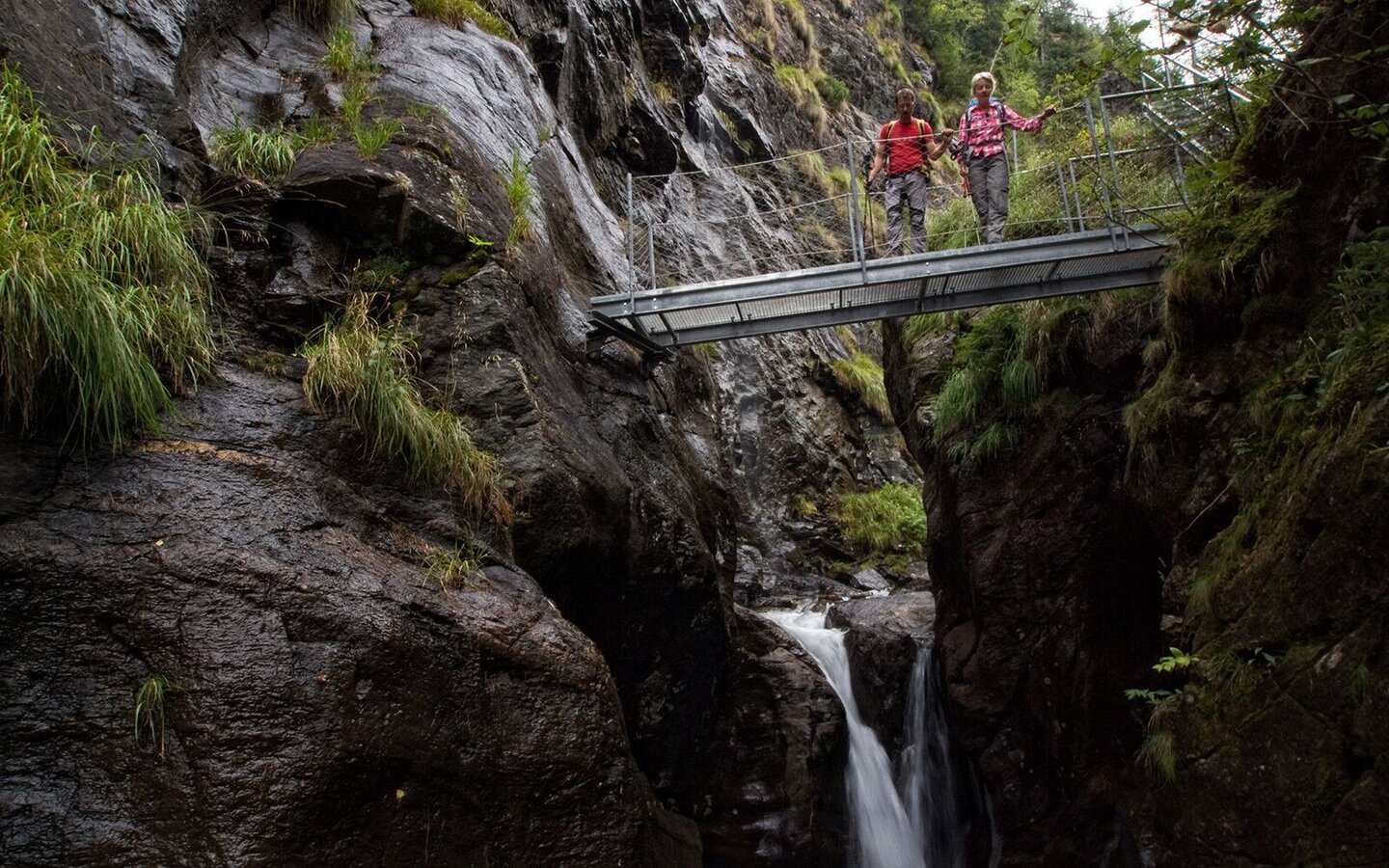 „Wild Waters“ – this is obviously the right title for this hiking tour. Just after 5 minutes you reach the first viewing platform and are welcomed by the noisy water. Along the Alpine trail you cross the imposing 50 m cable footbridge, at the 70m high Riesach waterfall and you come across several viewing platforms, which grant magnificent views along the “Höll”. The cable footbridge, which is the absolute highlight of this tour, and the viewing platforms grant truly memorable experiences.