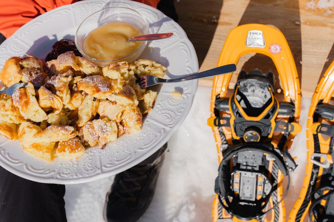 Via the forest road you can easily reach the Schönwetterhütte through a high forest. The hut is generally closed in winter 2024/25. On the same path you go back down into the valley.
