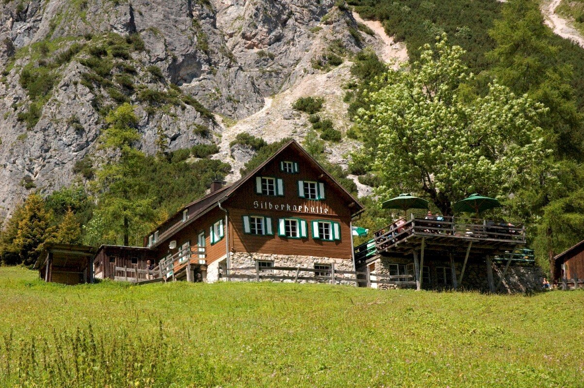 From the Silberkarklamm car park, an impressive ascent leads along the roaring forest stream. Easily accessible via steps. Waterfalls, vertical cliffs, flowers (especially many gold auricles in spring) and the wildly romantic scenery in the gorge and in the cirque make this hike very interesting for families. Also recommended when the weather is not very nice. The Silberkarhütte is located in the middle of the Kar. From the Silberkarhütte Höhenweg as the way back: to the left of the hut, a challenging and somewhat exposed path leads along the slope, reaches a great vantage point and then leads as a real "Wurzelsteig" narrow and steep downhill in the forest to the wayside cross, from there turn left back to the gorge entrance.