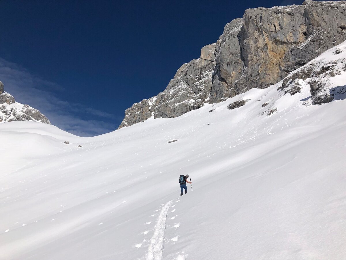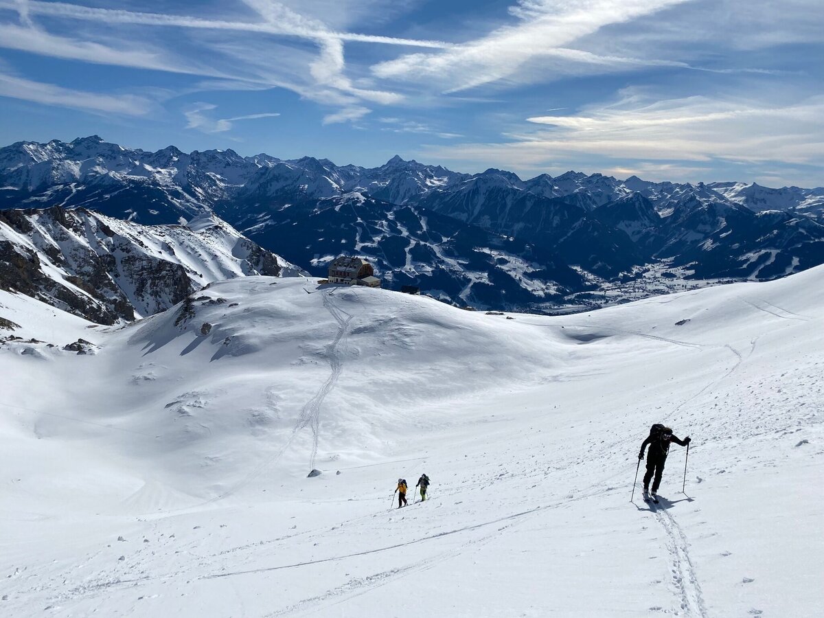 From the starting point, this tour leads via the Lärchbodenalm to the Guttenberghaus, which is not open to the public in winter. From there you can go through a cauldron to the Feistererscharte and then to the Sinabell (crampons required). However, the last climb is easier to do without skis. You go down the same way - numerous downhill variants are available to you here.