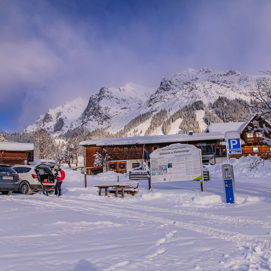 In good snow conditions, you can climb up to the Feisterer directly next to the Hotel Stierer via the groomed winter hiking trail and the access road.