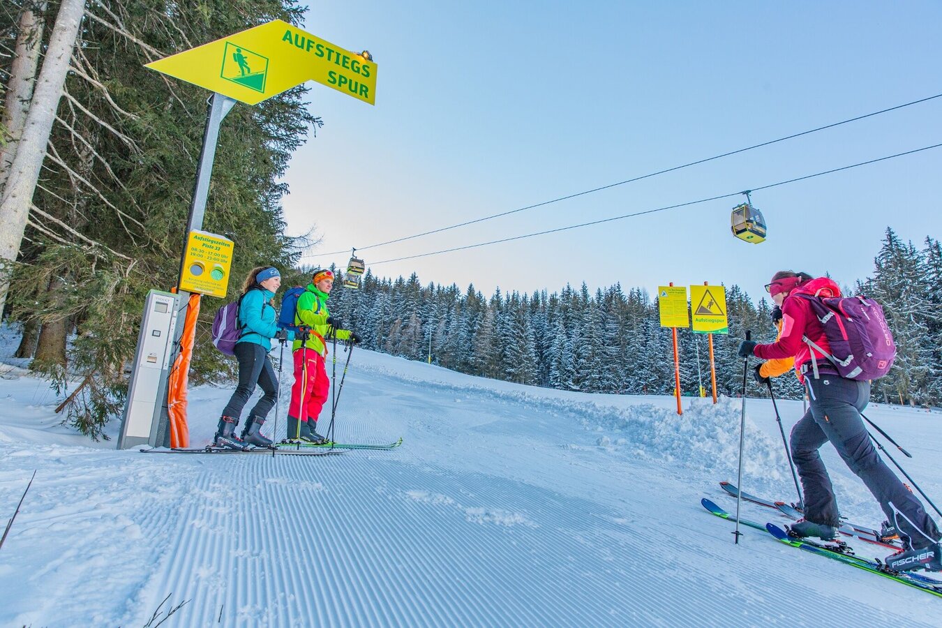You can find the prices HERE. You can get your ticket at the ticket machine directly at the start of the ascent track or at the ticket office of the Gipfelbahn Hochwurzen. There is also a touring combined season ticket available for Planai, Hochwurzen, Galsterberg, Rittisberg and Fageralm. Holders of a valid ski pass do not need a separate ticket. The ticket machine only accepts ATM & credit cards with NFC function as well as coins and does not give return money! The ticket must be carried on the ascent, as checks are carried out on the slopes.
