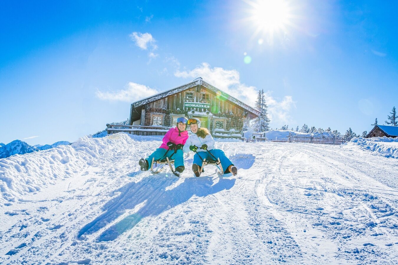 The Gipfelbahn Hochwurzen cable-car takes tobogganists up to the summit of Hochwurzen. From there the sled run takes you back to the valley terminal of the cable-car - so multiple runs are easily possible. Stopping off for food is part of it – and you won’t miss out on Hochwurzen. The lodges are well distributed between the starting and finishing points of the sled run and offer enough space even for large groups! On top of that, you enjoy a great view to the Dachstein massif from Hochwurzen summit.