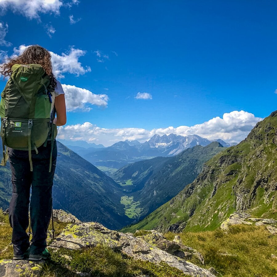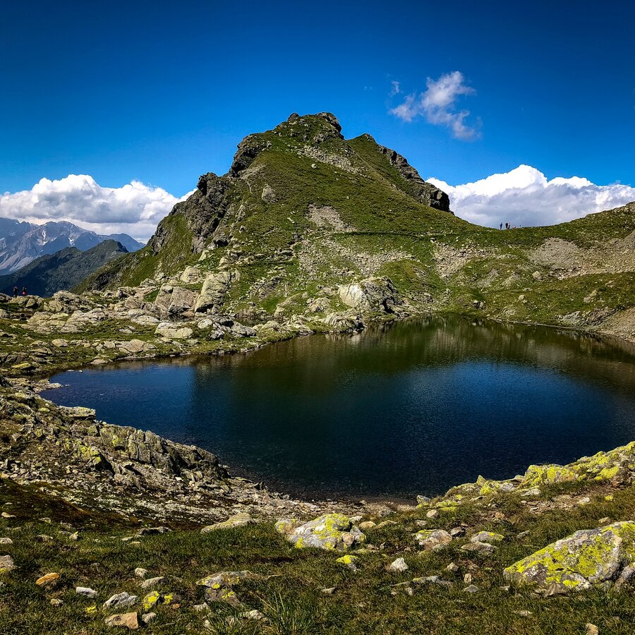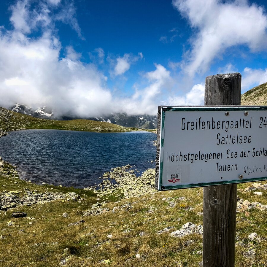 From the Gollinghütte (Tel. +43 676 5336288) we hike on this stage of the hiking route "From glacier to wine" first in numerous hairpin bends over steps and rock shoulders, past a small mountain lake on the left hand side to the Greifenbergsattel. Depending on the season, it can also happen that the last meters of altitude to the Greifenbergsattel are covered with snow due to the slope. After this long ascent, a panoramic view opens up to us on all sides, which will certainly remain in our memories forever. From here we also have probably the most beautiful view of the Klafferkessel with its numerous lakes and lakes. Very dominant and framing the Klafferkessel are the dark green, strongly indented flanks of the Waldhorn. In the foreground, the small and larger lakes shine out in the green of the mosses, which are distributed on different levels. Still further to the east, the summit of the Hochwildstelle appears and below it the beautifully green slopes of the "Himmelreich".