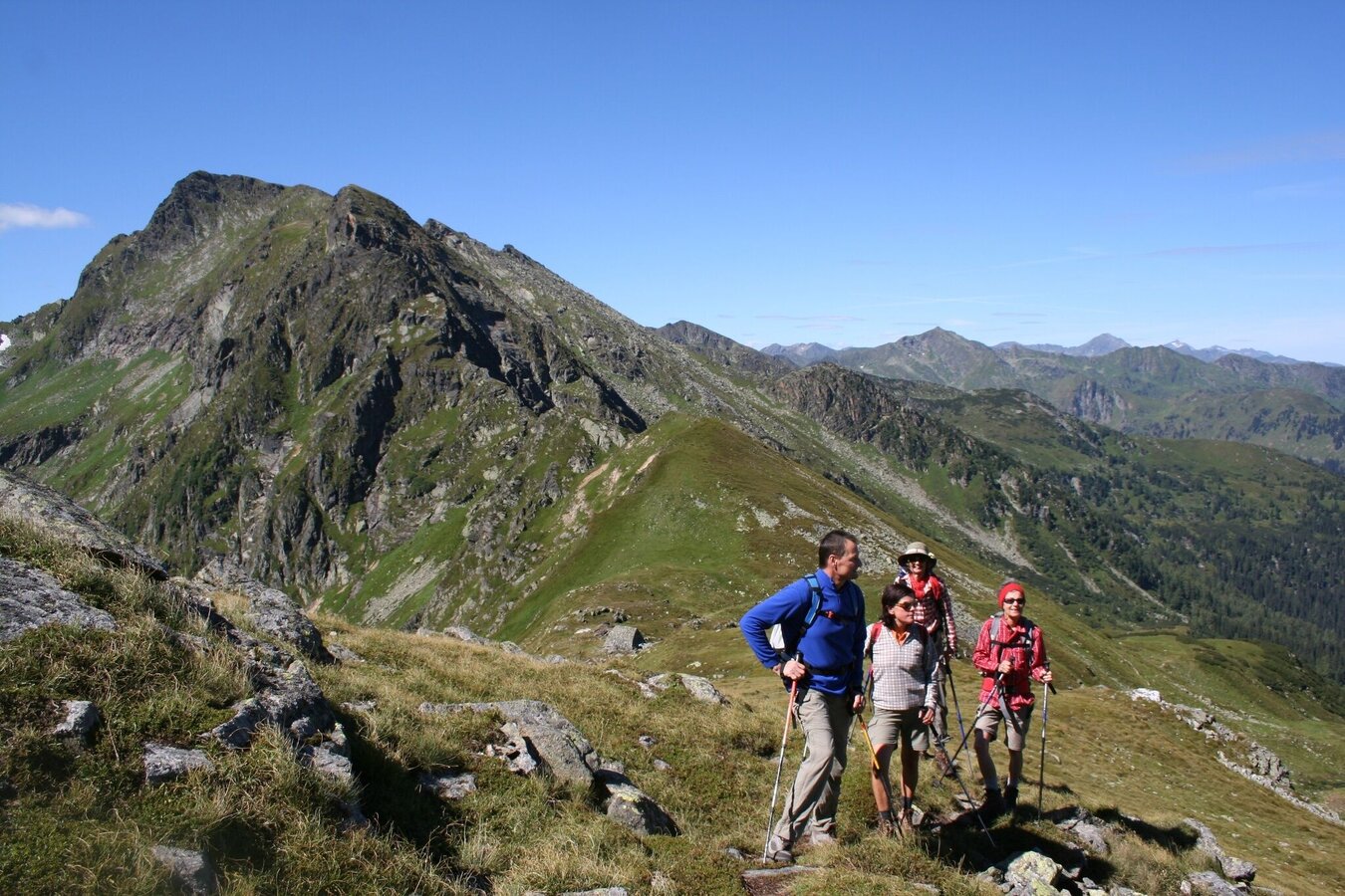 At the Hinterwald resort village parking area, we follow the forest road along the Donnersbach up to the Riedler Alm. Trail No. 936 takes us across gorgeous alpine terrain to the lower and upper Glattalm. From here on, the path becomes steeper and narrower as it passes through the broad alpine plateau and on toward the ridge’s deepest dip, the Glattjoch. The old chapel located in this ridge saddle, flanked by the striking green slopes of the surrounding mountain peaks, attests to this passage’s importance as a main crossing route between Oberwölz and the Ennstal. We will take the same path down the mountain that we followed up.