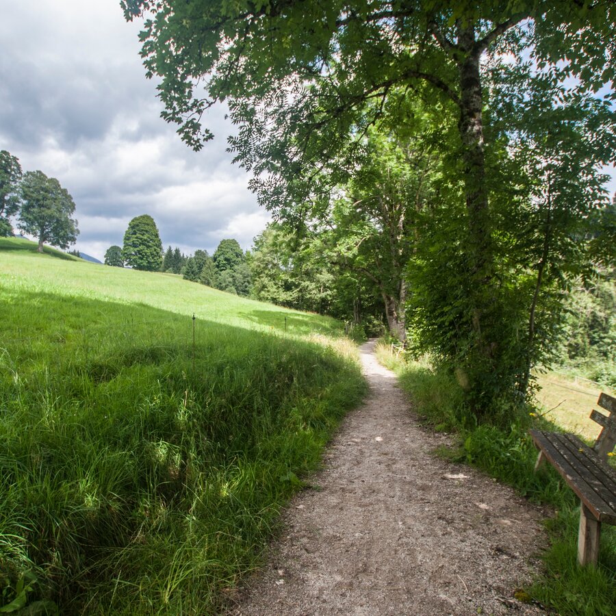 From the hiking trail head Vorberg-Steirerhof we start to the right and walk past Brandstätterhof farm along the panorama trail n° 100. This ones makes a left along the road towards North and passes the Fasl and Astl farms. Shortly after we reach the hiking trail head Vorberg-Arnika. Following trail n° 100 past pension Arnika we reach Greimelbacherhof farm. About 300 m after the farm we make a right and cross the river to Ramsau-Vorberg. After the crossing we make a right again and walk towards South, and later South-East. At the Vorberg intersection (Ramsau-Vorberg/Pichl-Vorberg) we walk on straight, crossing over a meadow and then through a short forest passage. After that we walk along the road for a short distance before we follow the edge of the forest to the right. We pass through Wolfsschlucht gorge and return to Brandstätterhof and the hiking trail head where we started.