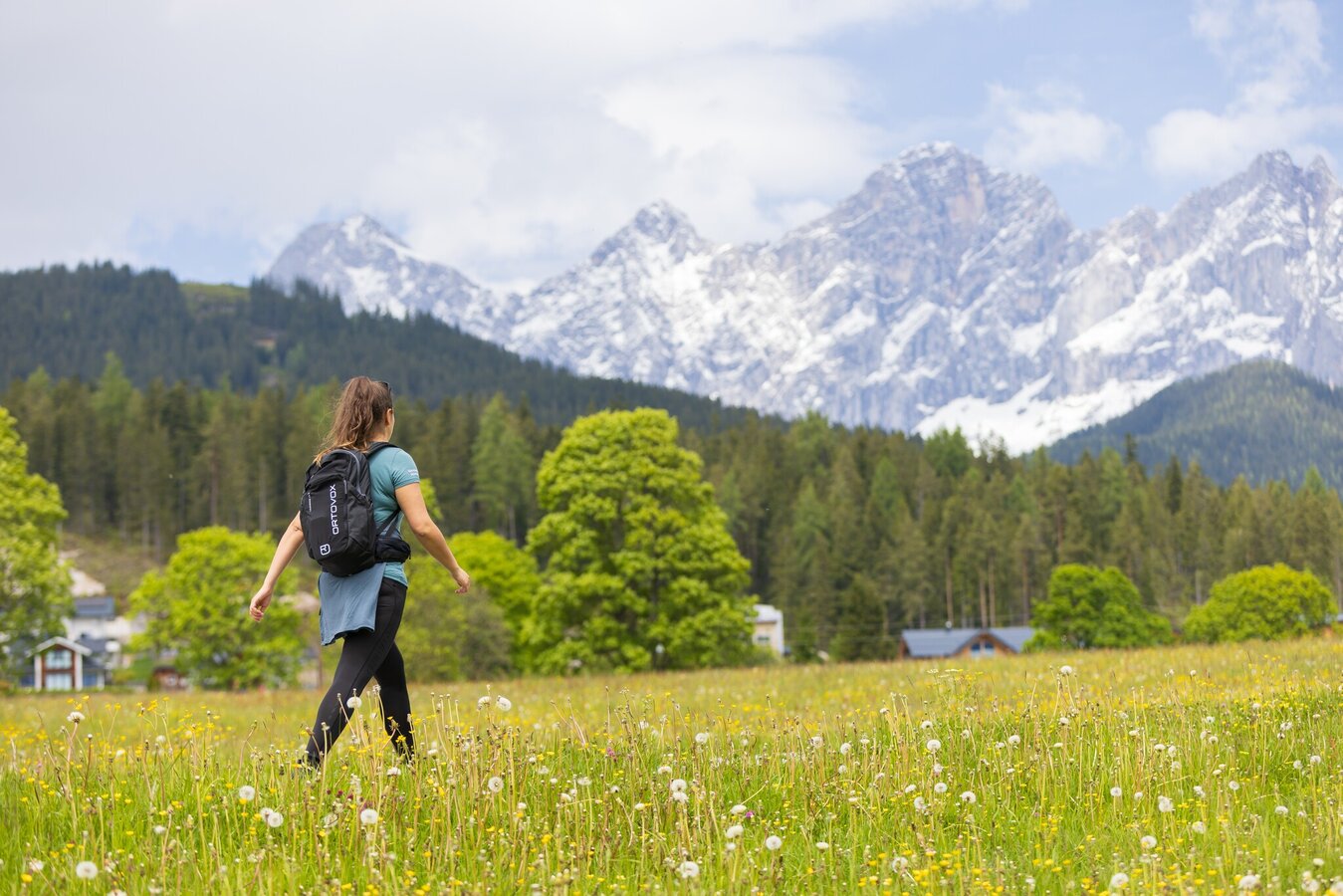 The path leads gently and wild romantically through the Wolfschlucht towards Ramsau-Vorberg, always with a view to the Dachstein and the Schladminger Tauern. At the high plateau we walk through meadows, forests and scattered settlements. The way back runs on an easy to moderate selected terrain and we have a wonderful view to the surrounding, impressive mountains. Via the farm way we come back again to the starting point.