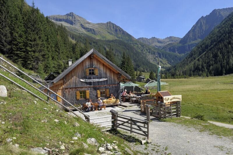 From Seeleiten car park at Riesach waterfall you ascend to Gfölleralm and Riesachsee Lake either via the alpine trail through "Höll" gorge or via a forestry road. Passing by the lake and the alpine chalets of Kaltenbachalm and Berallerhütte at Kotalm you follow trail n° 777 to Preintalerhütte and Waldhornalm mountain refuges.
