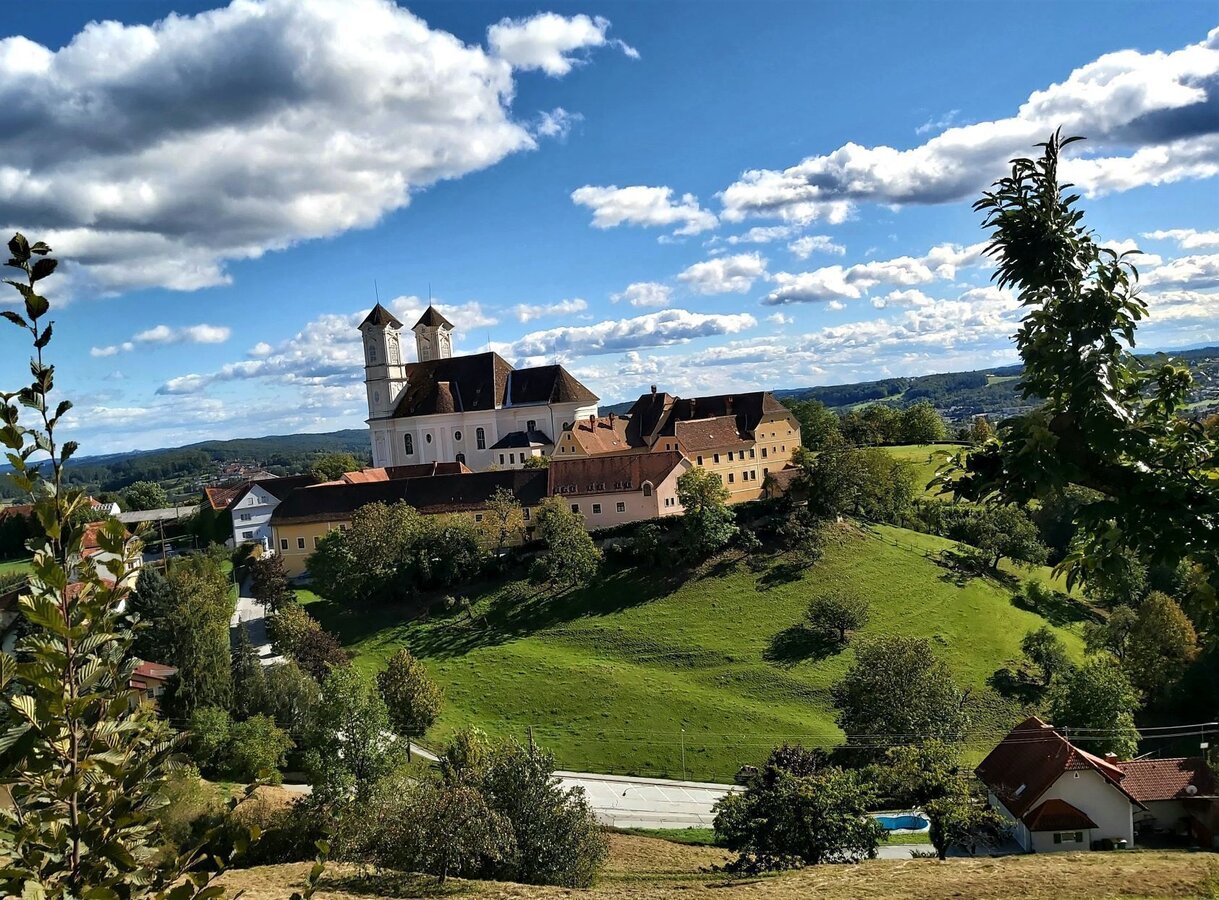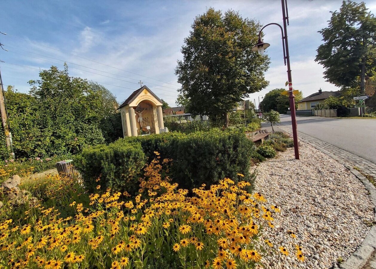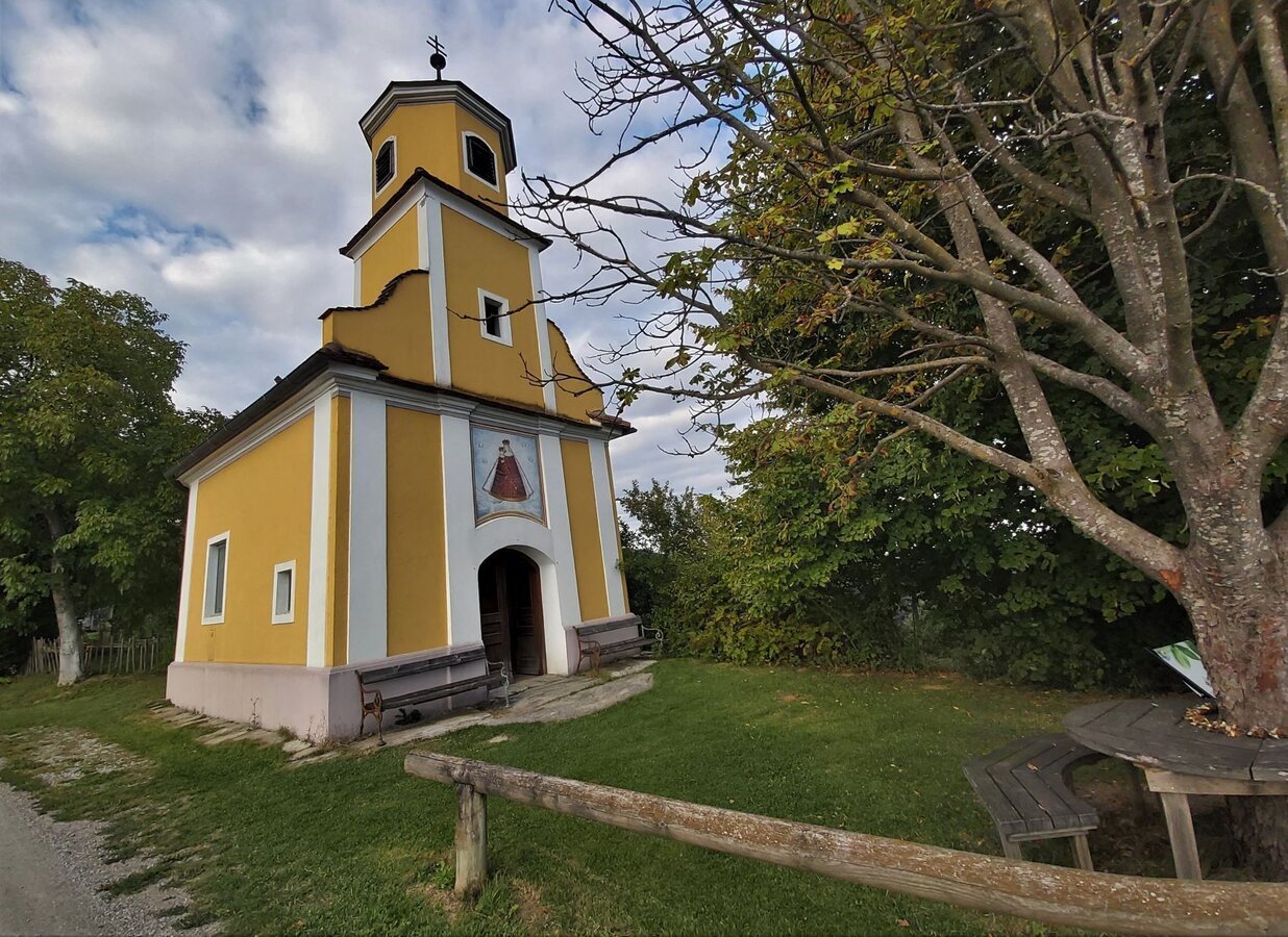 - In the center of Krottendorf, we turn right at the wayside shrine and can already see the basilica on the Weizberg in front of us.