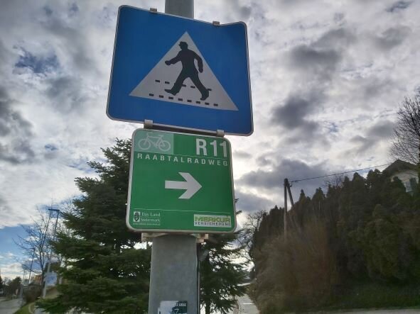 - At the "Tannenwirt" we turn right uphill and cycle along the R11/Raabtal cycle path to Gleisdorf.