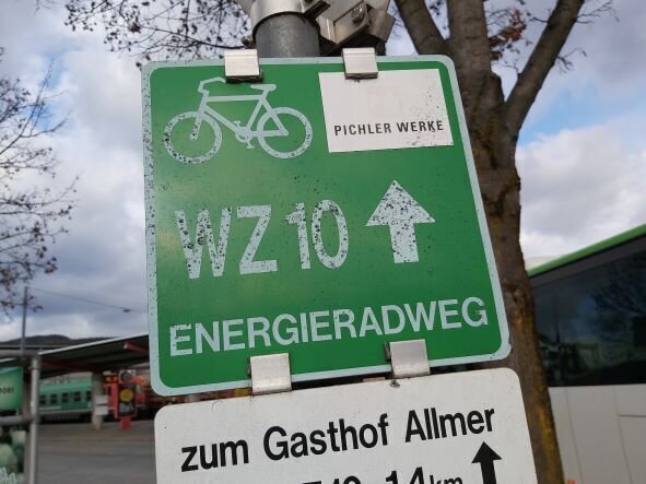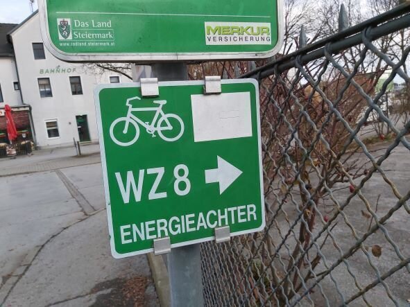 - Via Krottendorf we reach the traffic circle, we continue straight on up to the basilica and now follow the WZ8/Energieachter.