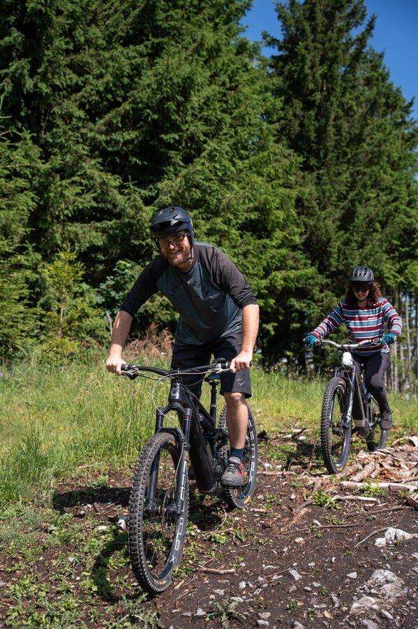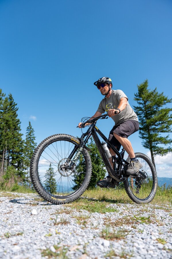 Nach einer kurzen Abfahrt in den Ort Sankt Radegund geht es rund 750 Höhenmeter bis zur Bergstation der Schöckl Seilbahn hinauf. Oben angekommen kann man die selbe Abfahrt wieder hinunter fahren, den 300er der Schöckl Trail Area nehmen oder auch mit der Seilbahn abfahren.