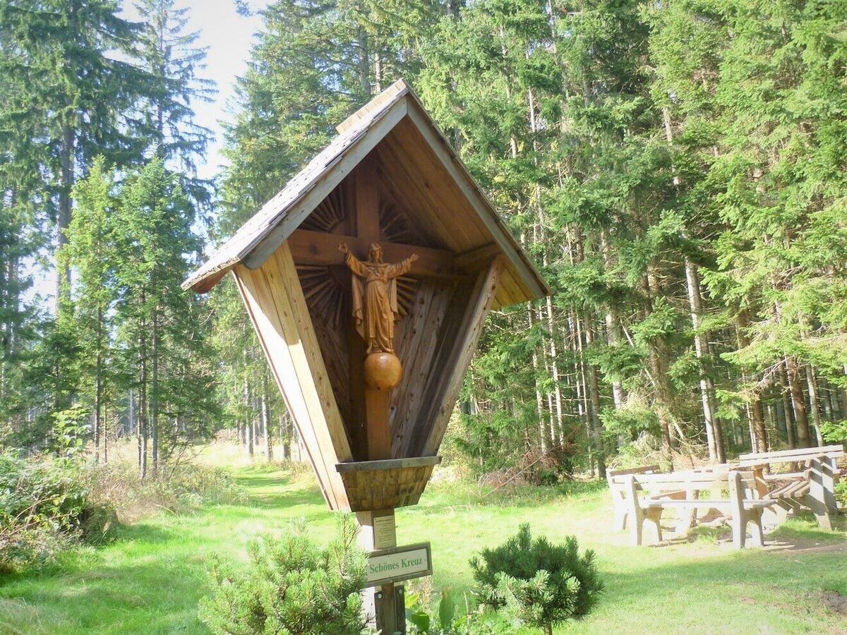 • We walk past the “Schönen Kreuz” and the Naturfreundehaus “Bendlerhöhe”.