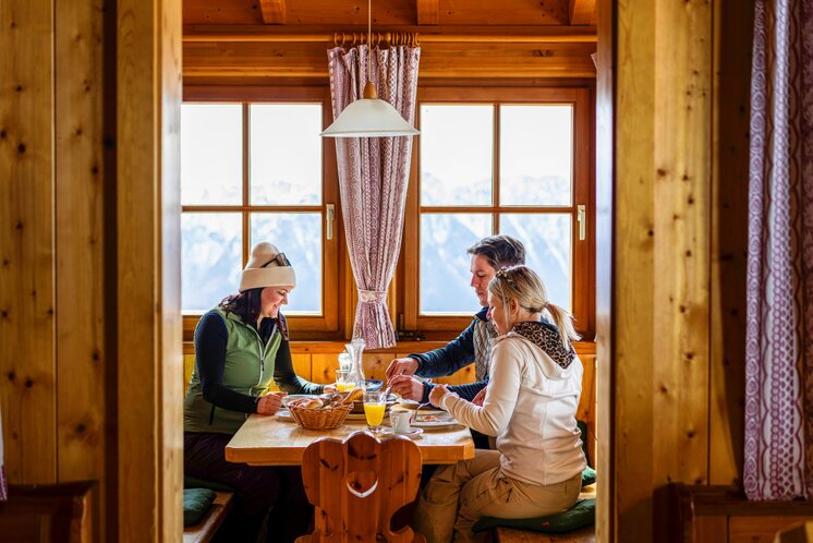 Of course, there are also plenty of opportunities to take a break and warm up at a cosy mountain hut or restaurant. The hosts are always happy to welcome hungry sledgers and treat them to vegetarian, vegan or traditional dishes like pumpkin soup or “Käsespätzle”.