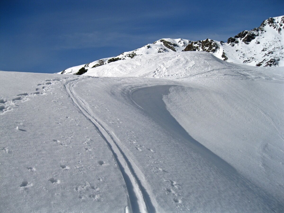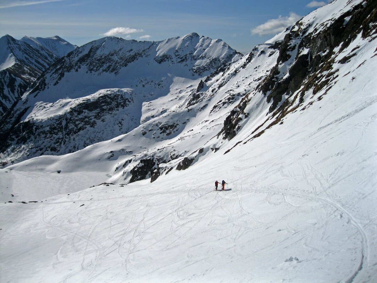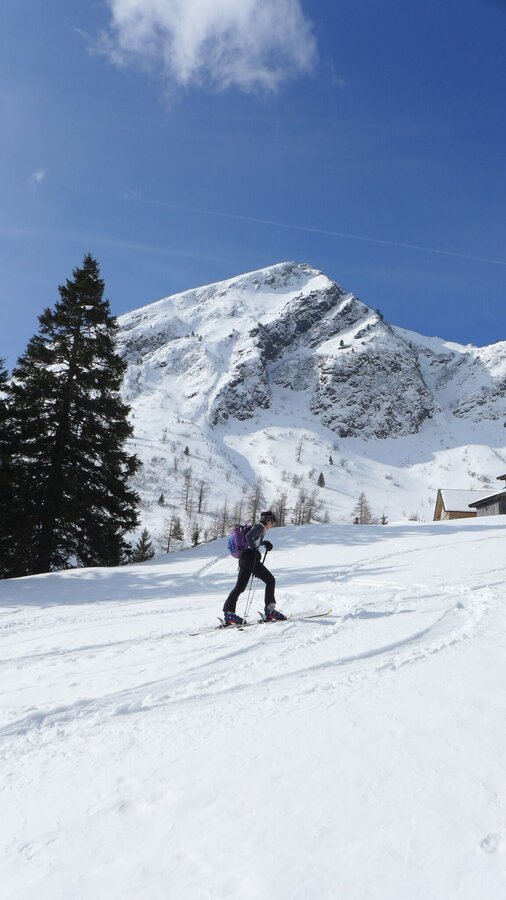 Option 2: Over the Sonnkar towards Sonnkarhütte. From here in the area of the summer path in the fall line to the road.
