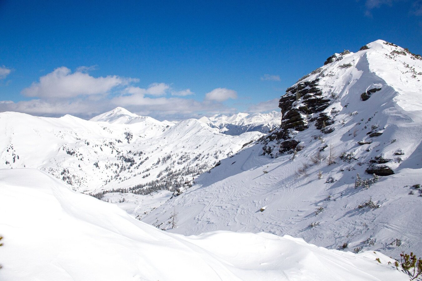 Please skins up several times! A scenic and ski technically extremely rewarding round, which can be shortened by the ascent with the Gläserbodenlift neatly. Although it is several times to skins up, but the descents, especially those to Stallaalm, are clear highlights. Arrived at the Goldbachscharte, you can decide - continue to the Jochspitze or go straight down towards the Planneralm.