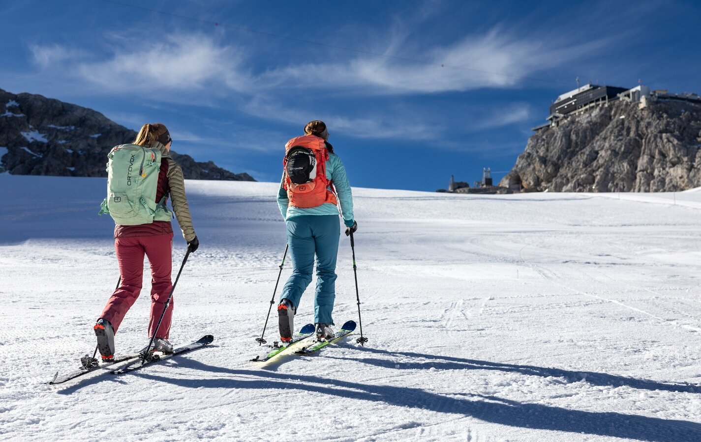 The "Kleine Mitterstein tour" is located above the tree line. Most of the Dachstein glacier faces north-east or north and is susceptible to rapid weather changes. Another major issue is rapidly falling or long-lasting fog, which can cause temperatures to plummet. Please inform yourself well before the tour about the weather development and snow conditions and carry sufficient protective equipment.