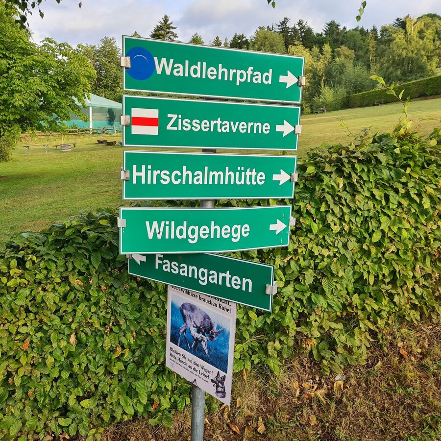 • A display board at the parking lot provides an overview of the route of the forest nature trail, which we follow to the Zisser Taverne (former inn).