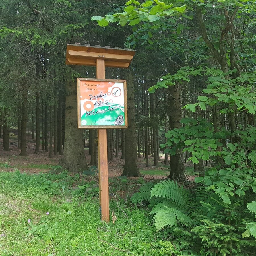• It first leads us through the forest and then along a forest road past the Hirschalm hut, where we come across station 2 of the forest nature trail.