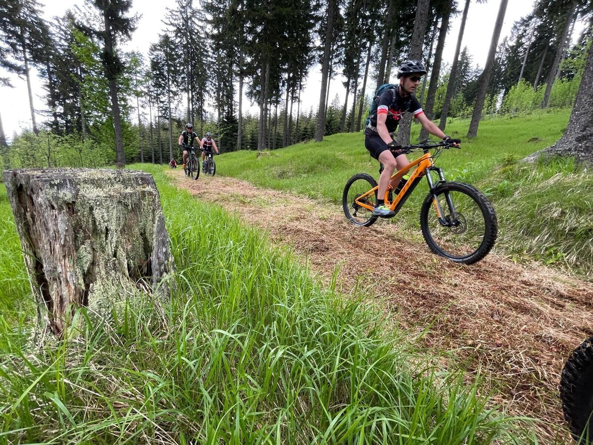 After the obligatory break in the alpine pasture, the trail (single trail) goes crisply down to the former Liechtensteinersäge. This section can also be bypassed.