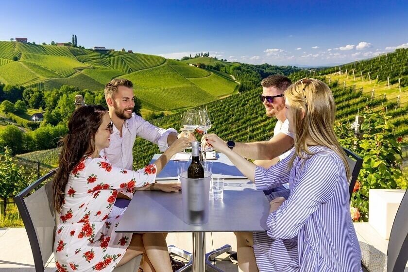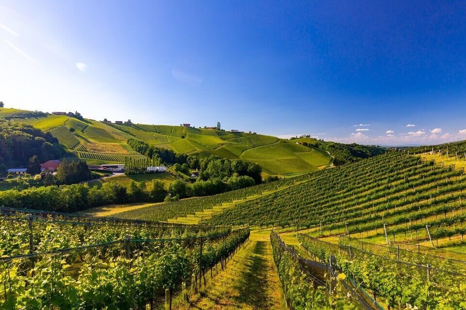 Photo stop at the Karl & Gustav Strauss winery with great views of the Gamlitzberg.
