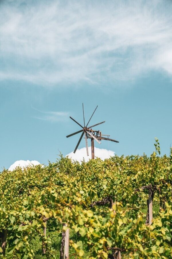 Weiter über die Bundesstraße zum Weingarten mit großem Klapotetz des Weinbauern Haring, wo der Winter im Weingartenjahr beschrieben ist. In der Buschenschenke können Sie Rast machen, um dann über die Pfarrerwaldsiedlung, vorbei am Freibad, zurück zum Ausgangspunkt wandern.