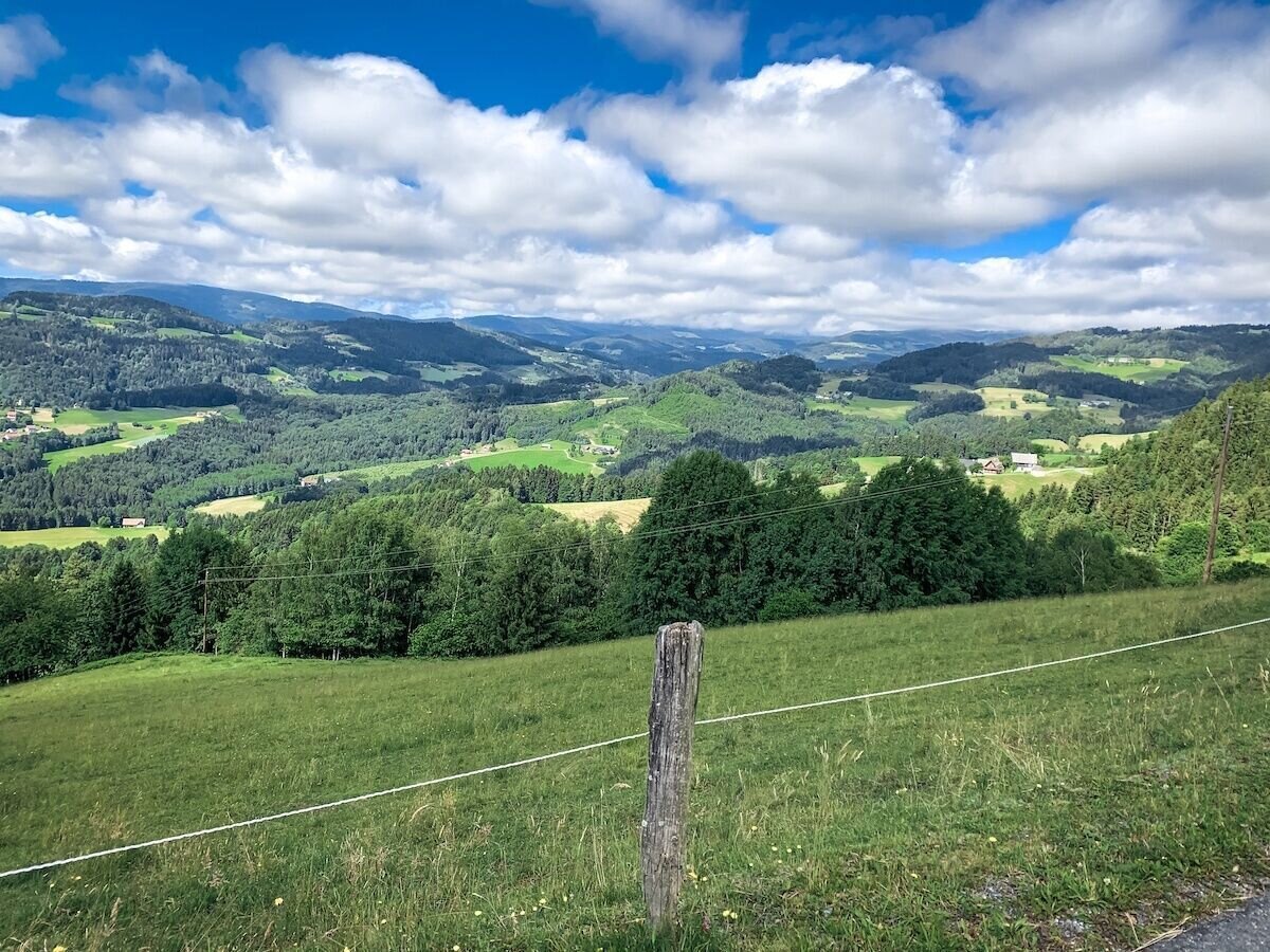 - Pass the Peiserhof winery and descend to Vordersdorf via a casual gravel road downhill.In Vordersdorf, the climb up to Hochmasser begins. It is advisable not to waste your energy on this first section of the long climb up to the Schirchleralm. Instead, enjoy the wonderful view to the southwest to the Kapun Ridge, to Greith and over to Eichberg-Trautenburg.