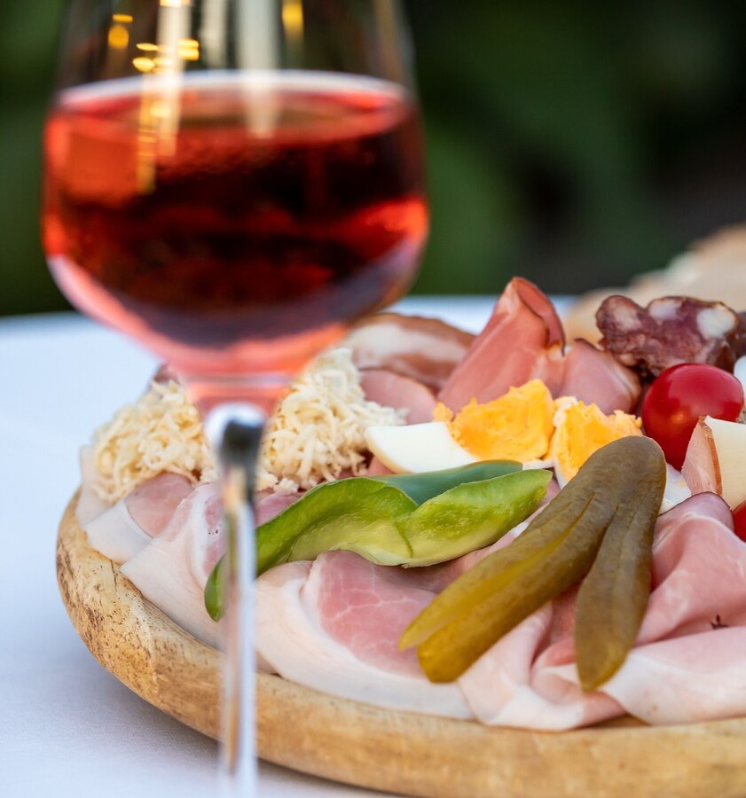 From here, the path climbs a little. Through the beautiful forest, which provides shade on hot days, you can already see the unique chestnut gardens of the Klug wine and chestnut farm. Time for a short detour to the farm and a good sip of Schilcher. Don't despair if no one is at home - there is a quiet drinks seller in the old cellar. Now it's time to enjoy peace, wine and the beautiful view of the vineyards, which show themselves in the most magnificent colours in autumn. Then continue on the S10 path in the direction of Greisdorf. Here your stomach may already be rumbling. You can choose between a hearty Buschenschankjause from Achatz or Styrian delicacies from the Fuchswirt kitchen. Why not try a crispy fried chicken with a salad with wonderfully nutty-smelling kernel oil. The green gold of the region.