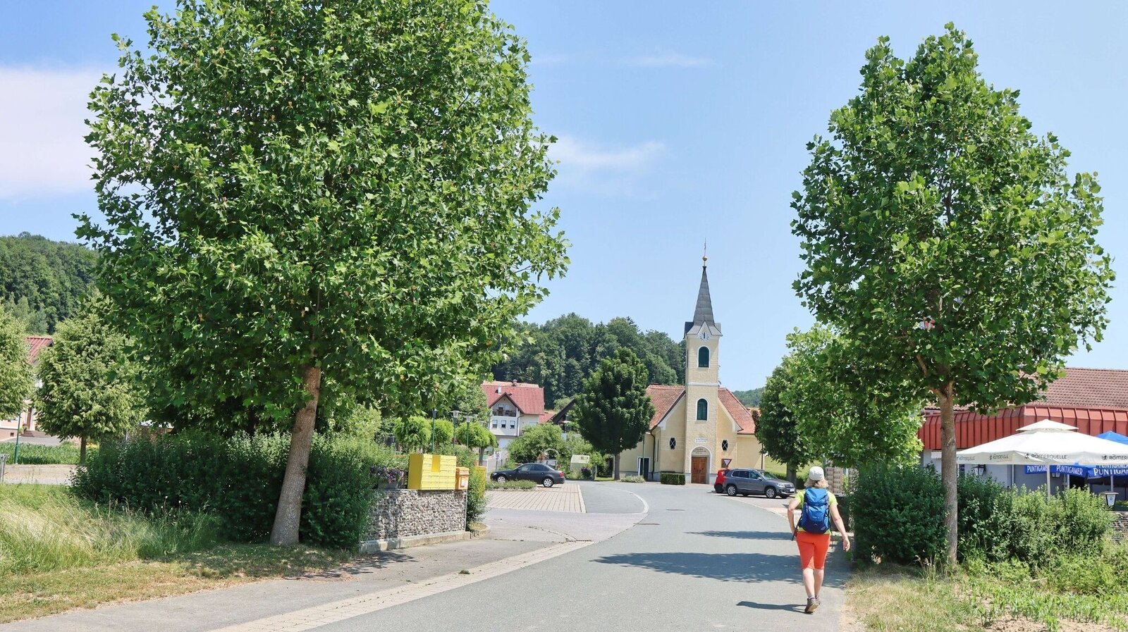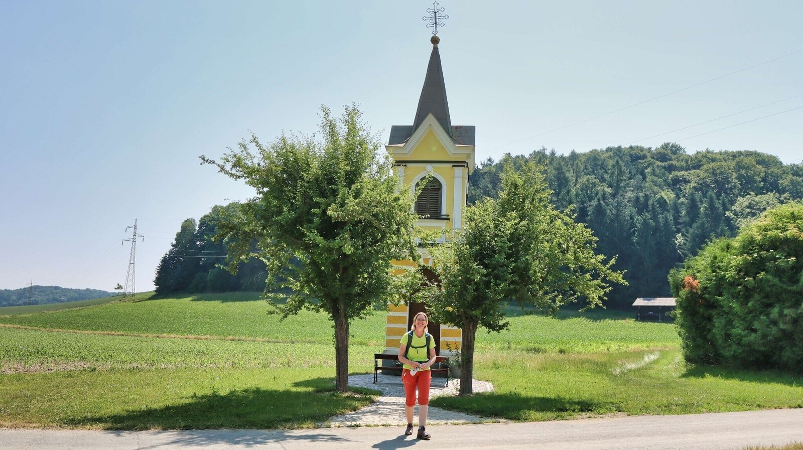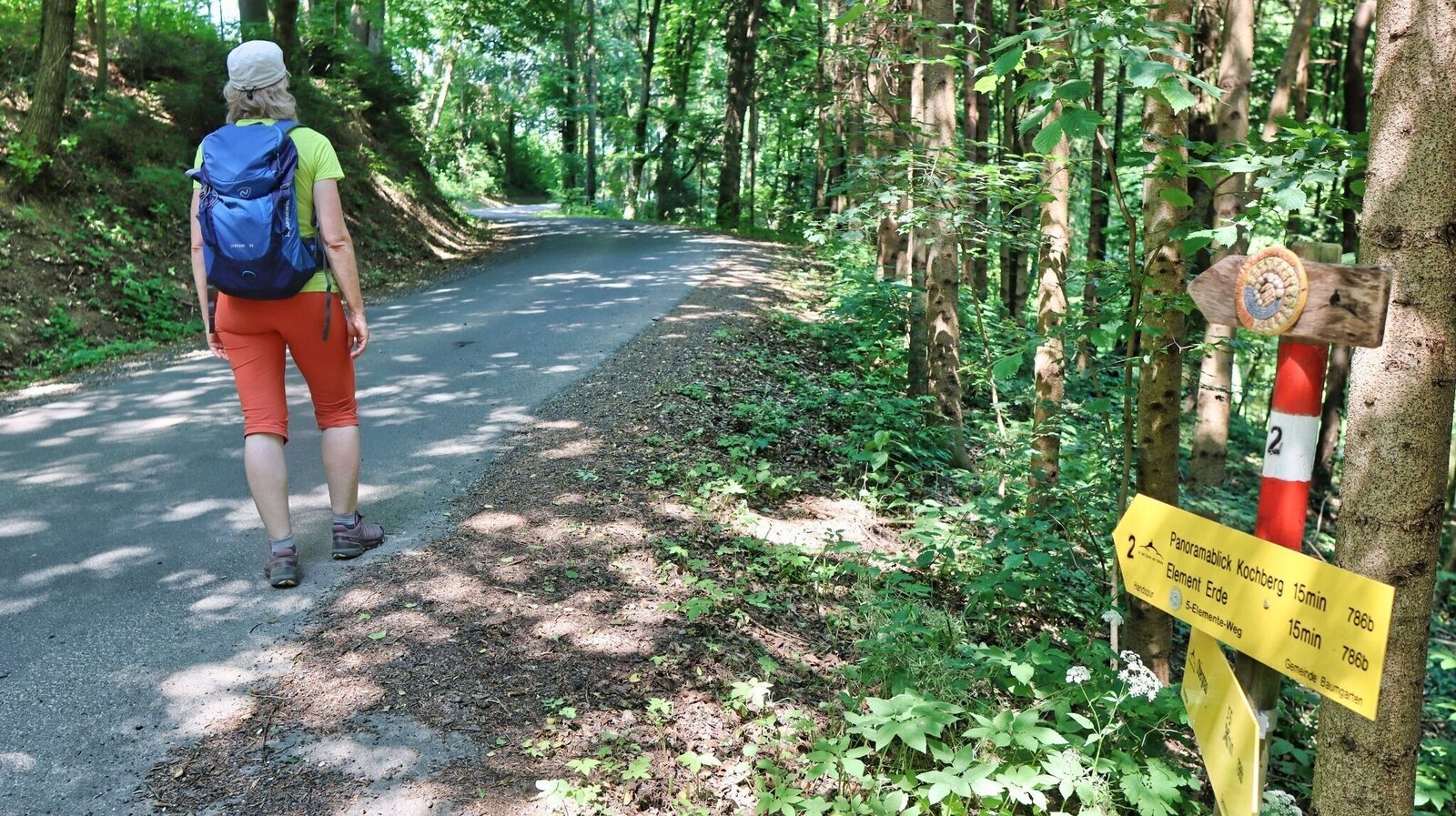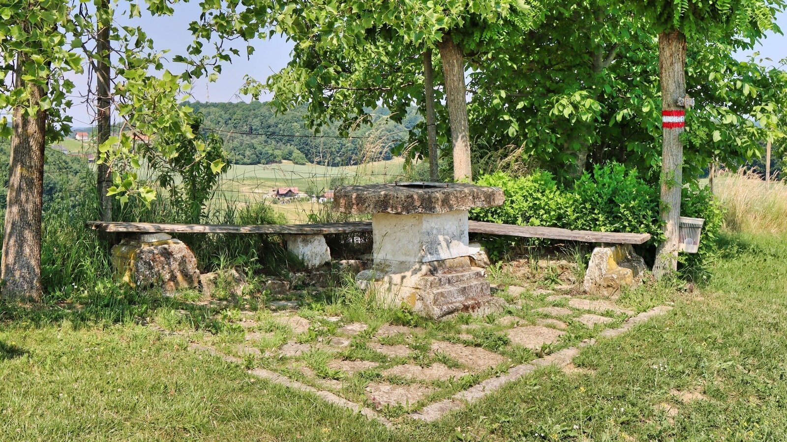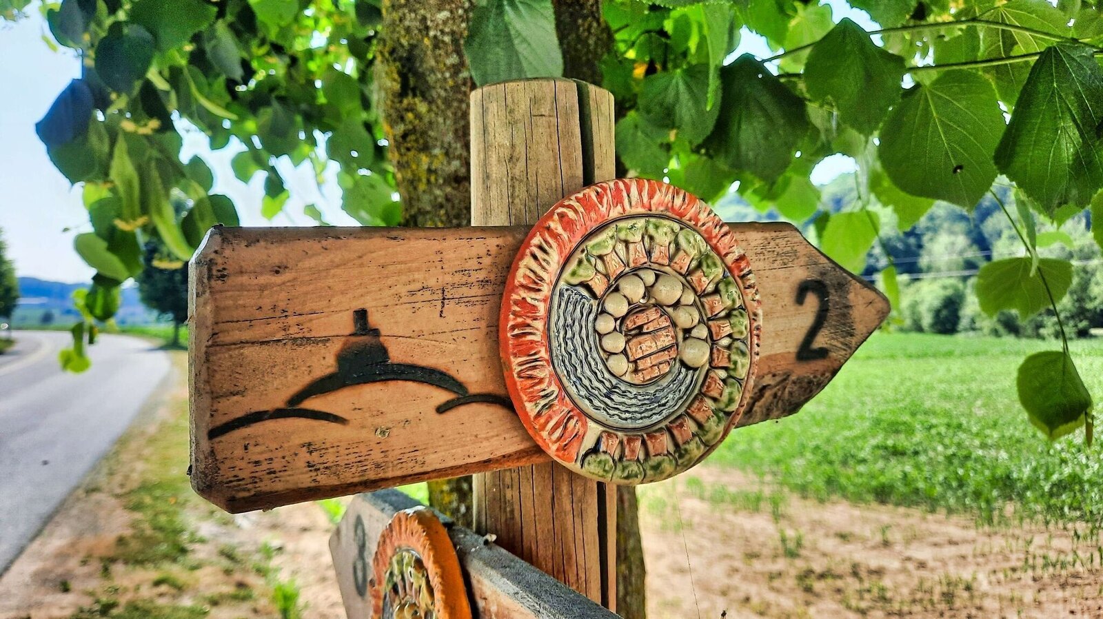 We start at the church or the village square of Wörth and orient ourselves by the local signposts. With trail 2 we leave the asphalt road just behind the municipal office to continue along the edge of the meadow and the brook. Soon we cross the brook on a wooden bridge and continue walking in the forest. Shortly after, we cross an asphalt road and go to Badenbrunn. It goes flat along the road until we reach the station "Element Water" on the right side. Here we see an 8-shaped Kneipp basin with a resting place and a memorial plaque of the composer Prof. Franz Fuchs. At the next crossroads we keep to the left, pass by a chapel and shortly afterwards turn left. From now on the path goes slightly uphill. The gravel road continues in the first part along meadow areas and after a house in solitude through a well-kept forest. We come to an asphalt road, turn right and follow it. Passing a few houses, we now go slightly downhill and turn right into the forest near a chapel. Immediately after, we leave the forest road to go uphill on the left. We reach an asphalt road, which we follow to the right. At a crossroads we keep left, pass by some houses and come to a self-service station. Only a few more minutes and we branch off the road sharply to the right to reach the "Element Erde" station on Kochberg at the edge of the meadow. After a leisurely break at this scenic spot, we hike slightly downhill along the edge of the meadow until we reach the road, where we continue slightly downhill to the left along the asphalt road. At the crossroads we keep to the right and follow the road through the forest slightly uphill. Arrived at the national road L212, which we cross quickly, after a few meters we reach a rest area with a wayside shrine. Here you have the option of shortening path 2 considerably and going downhill to Wörth via the Anna Suppan memorial. We pass the wayside shrine and again come to the state road L212, which we follow only a few meters. On the opposite side of the road is the Gratzlwirt inn. We turn right into a side road and follow it through the sparsely populated and panoramic area. The view of Riegersburg Castle accompanies us here on the heights. At the crossroads in the direction of the Buschenschank "Zur Ingrid" we go downhill to the right and pass it a little later. We stay on the road, which continues to the valley floor. Now we go straight along the asphalt road for about 1 kilometer until we reach the starting point of the hike.