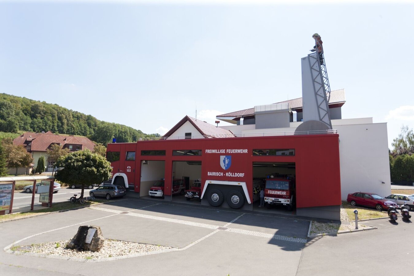 Parking area in front of the fire station