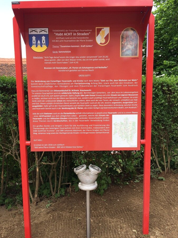 Many thanks and thanks be to God for the realization and financing of the themed trail to the participating fire departments and their commanders, in particular EABI Gottfried Trummer and OBR Johannes Matzhold, the parish of Straden with Pastor Johannes Lang and the market town of Straden with Mayor Gerhard Konrad.