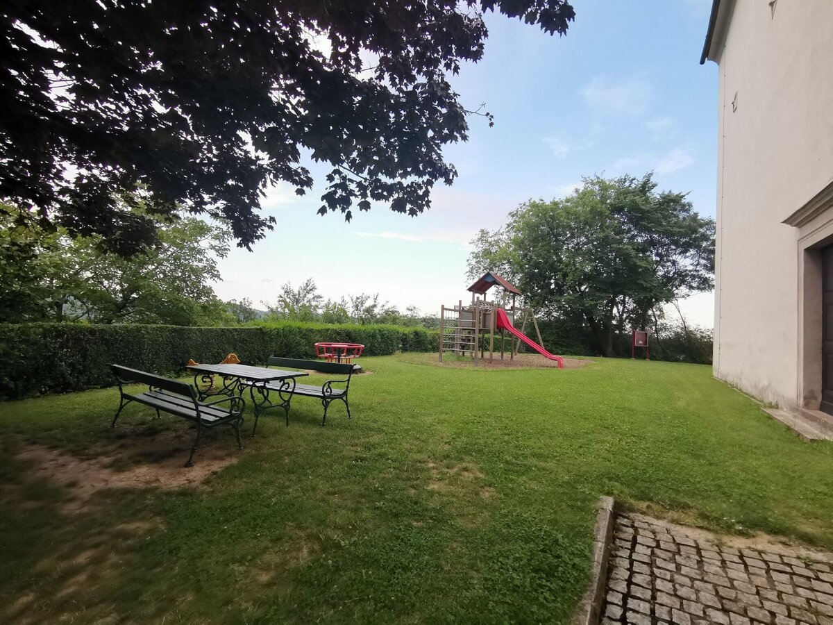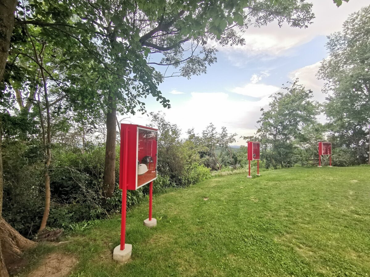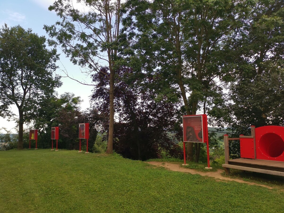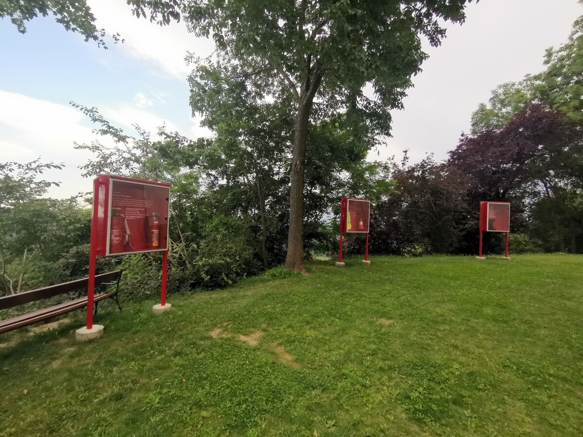 The theme trail of the Straden parish volunteer fire department takes us around the Floriani church. The tour starts at the fountain with the stone sculpture “St. Florian as patron saint and emergency helper”. Past the rest area and the fire engine red playground, the path leads us to the stations: