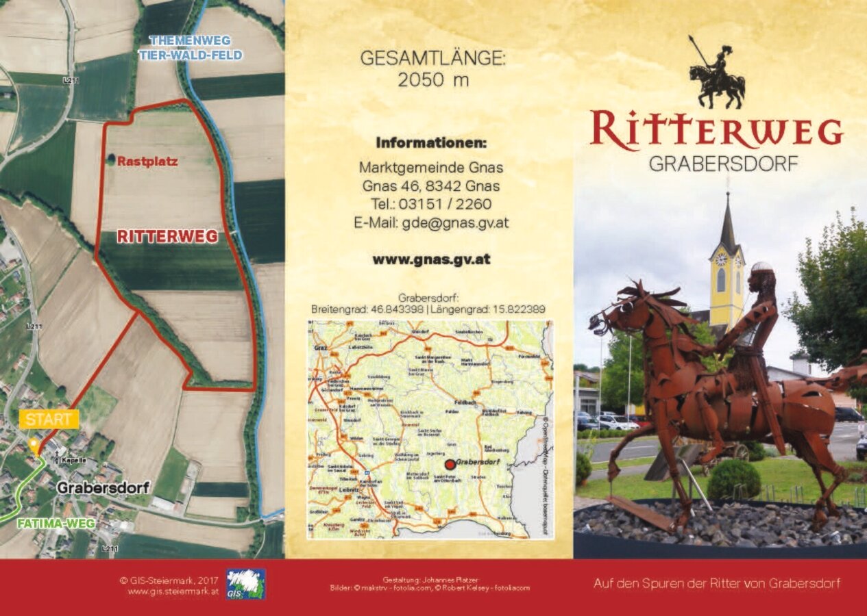 Further on we reach the Gnasbach, where the Ritterweg meets the "Theme Path Animal-Forest-Field", which in turn can be explored as a continuation of the "Höhenweg RAning". The splashing of the gently flowing brook in the background, continues to a small biotope, which invites to observe fish and native insects and to find new inspirations by yourself.