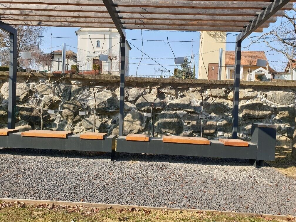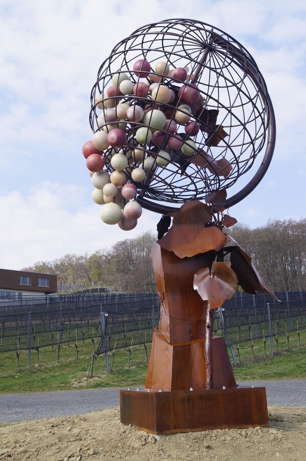 The 2nd variant leads after the viewpoint left down into the valley, past a bread baker, after a short piece right away into the forest and up to a direct marketer. From there it goes back down the forest, turn right and go along a dirt road past agricultural crops until before the border crossing in Deutsch Haseldorf. We turn left at the road, cross the border bridge and walk through the village of Deutsch Haseldorf past refreshment stations. At the end of the village we turn half-right, walk next to the vineyards up the hill to the main road. There you are rewarded with a magnificent view. Cross the road and turn left towards Weinlandhof, where we rejoin the Klöcher Traminerweg. This leads us to the Hochwarth, down to the castle ruins in the village of Klöch to the Vinothek.