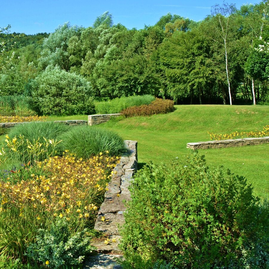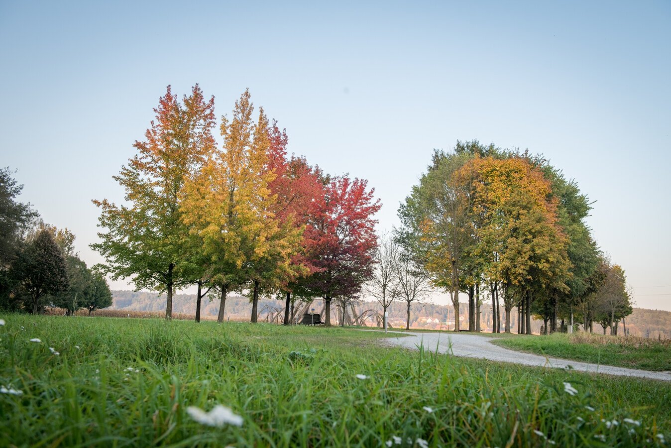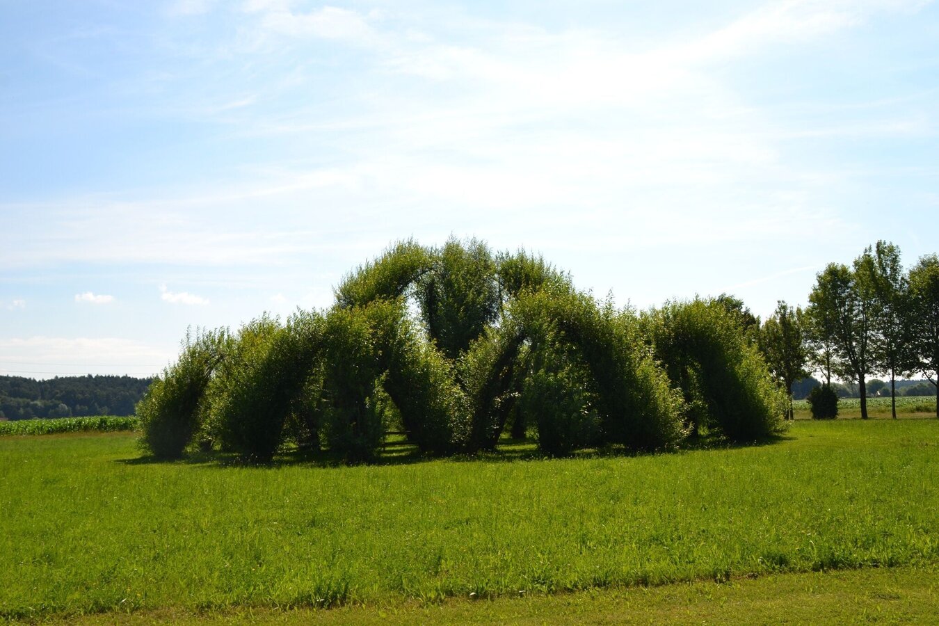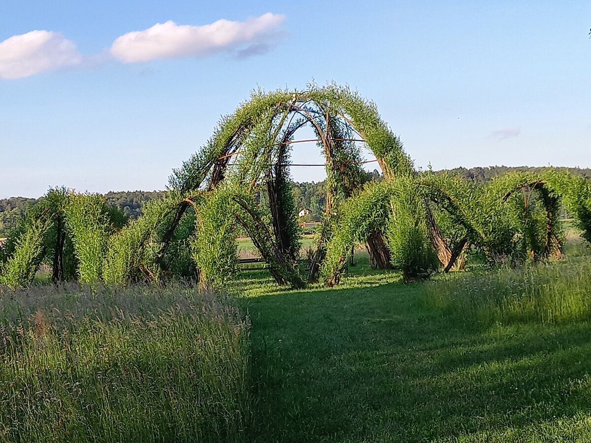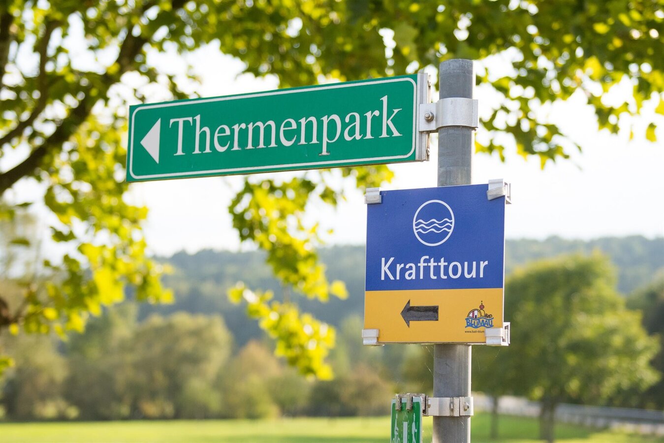 Here we turn right and reach the village of Kleinsteinbach on the opposite side of the road. We have to overcome a short slope and then we are in Obergfangen. Here we recommend a detour to the Buschenschank Kober. Through shady forest we come back to the village of Kleinsteinbach. At the first crossroads turn left and then right towards Rogner Bad Blumau. Along the sidewalk next to the road we reach the thermal park. Here we pass the willow building and turn left and then right. Passing the tennis courts, we return to the starting point.