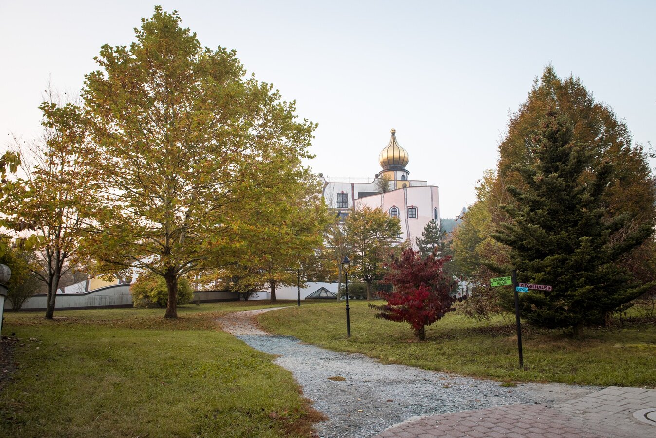 Turn left at the first junction and right at the next. Rogner Bad Blumau should now be in sight again. Pass the "Star Horses" horse farm and then turn left into the Bad Blumau thermal spa park. Now you pass the Weidenbau and the tennis courts. Turn right at the primary school and return to the starting point.