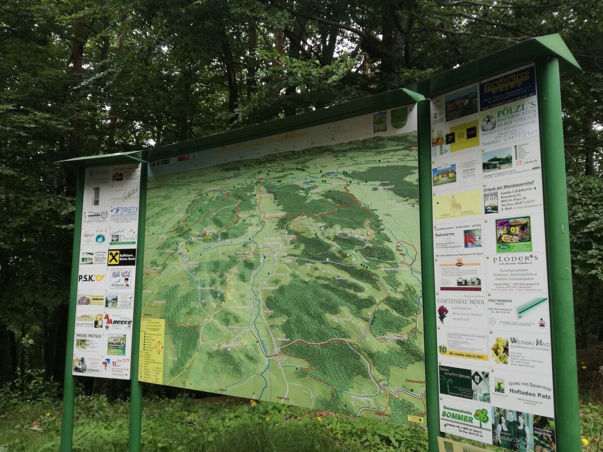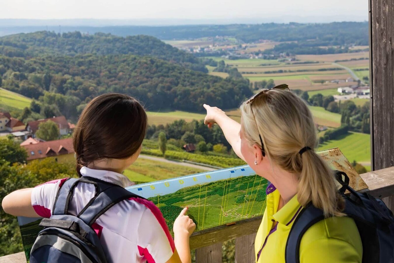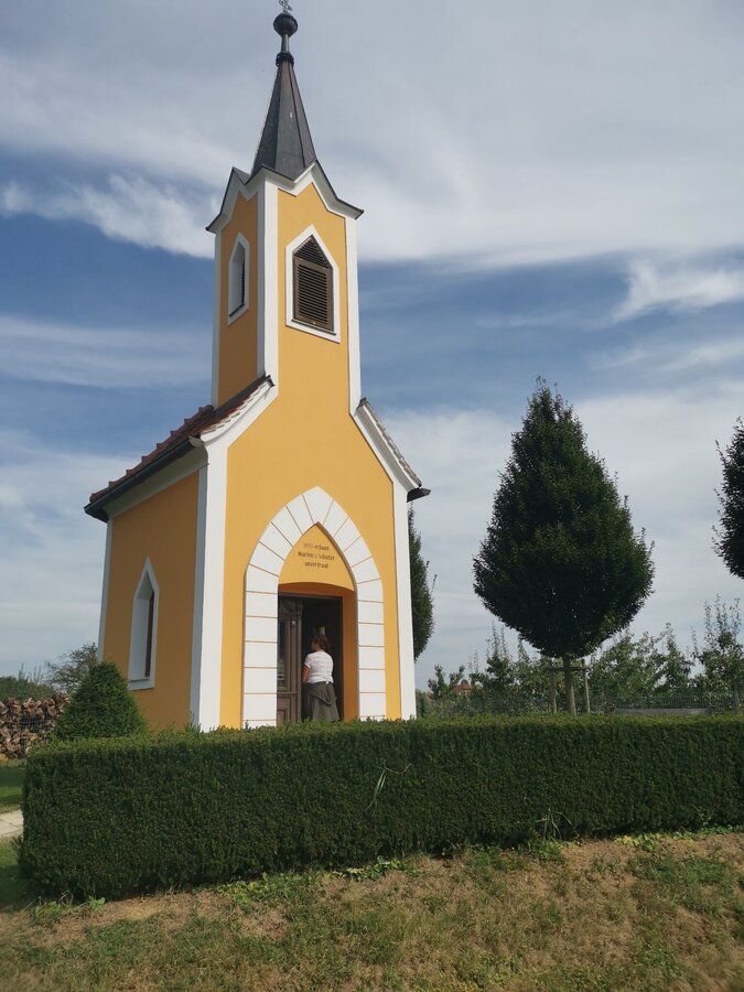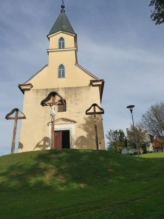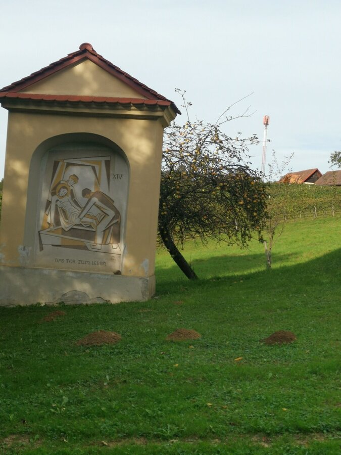 Start of the hiking trail is Petersplatz - continue to the leisure center. From there, the Fred Stohmeierweg and the Wein und Mühlenweg run south to the Ottersbach bridge. The Fred Strohmeierweg goes left at the Ottersbach bridge in the direction of Edla before passing meadows and fields over the Auersbach into the forest up to Khünegg. Here you will reach the house where Prof. Fred Strohmaier was born. Our hike takes us further to Weinhof Reichmann (great view) along the ridge to Buschenschank Kummer and then to Perbersdorf: Tractor Museum Wildermuseum and further to the lookout (Weinwarte) and next to it the Berglerschlössl. Along the ridge in a southerly direction past the Rauch wine farm, which is also a cigar producer, to the Calvary Chapel, the Way of the Cross in the direction of the leisure center and Peterplatz.