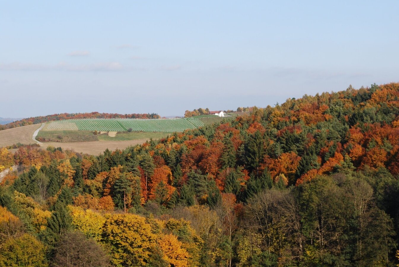 From the spa to Dornegg only forest paths, then a short, little used municipal road with a beautiful panoramic view over the district of Stein and the Kögelberg area. Through the Rehgraben only forest and meadow path, up towards Hartbergen to the viewing terrace on the roof of the VINO.TAKE. Beautiful panoramic view of the Styrian hills, western Styria and to the east into Burgenland and Hungary.
