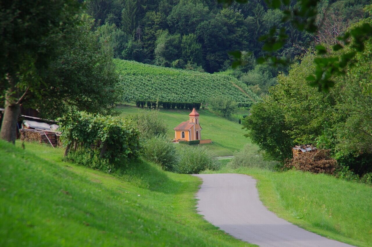 Start is in front of the spa left direction Hotel Stoiser and vis á vis into the forest, from where many trails begin. Here you follow the signs in the forest for about 2 km. In the field of vision you always have the municipal road towards Unterlamm. Then follows a short stretch of road accompanied by vineyards with a beautiful view to the right into the Rehgraben and Hartbergen and to the left to Stein and on the Kögelberg. Then it goes back into the forest and downhill into the Rehgraben. Here you cross the asphalt road and walk on a meadow path first flat into the Rehwinkel and then over serpentines towards Hartbergen. There you cross the Thermenstraße and then reach the viewing terrace on the roof of the VINO.TAKE. Afterwards, the trail goes off the road and over the "Krafthügel" back to the spa.