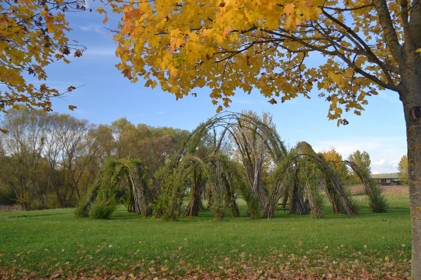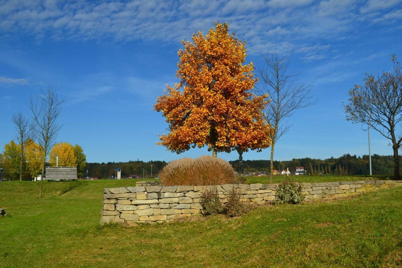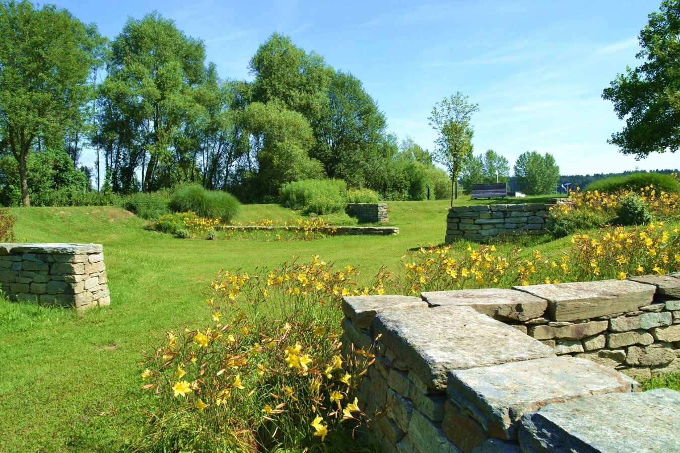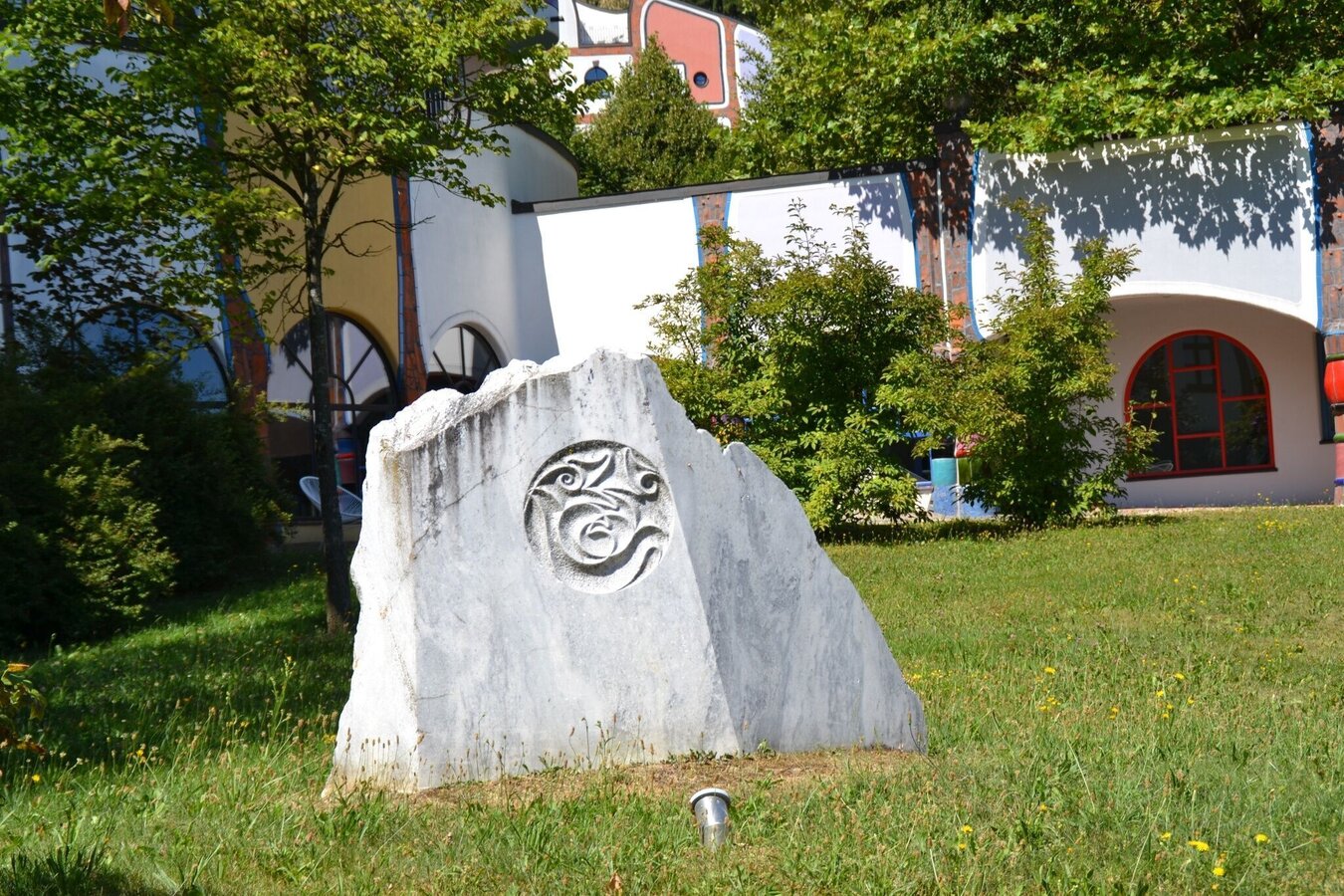 From the largest habitable Gesamtkunstwerk, designed by the artist and architect Friedensreich Hundertwasser, we head north to the small village of Schwarzmannshofen. Here we take a leisurely walk along the Safenbach stream to the geomantic stone. We turn right and cross the state road.