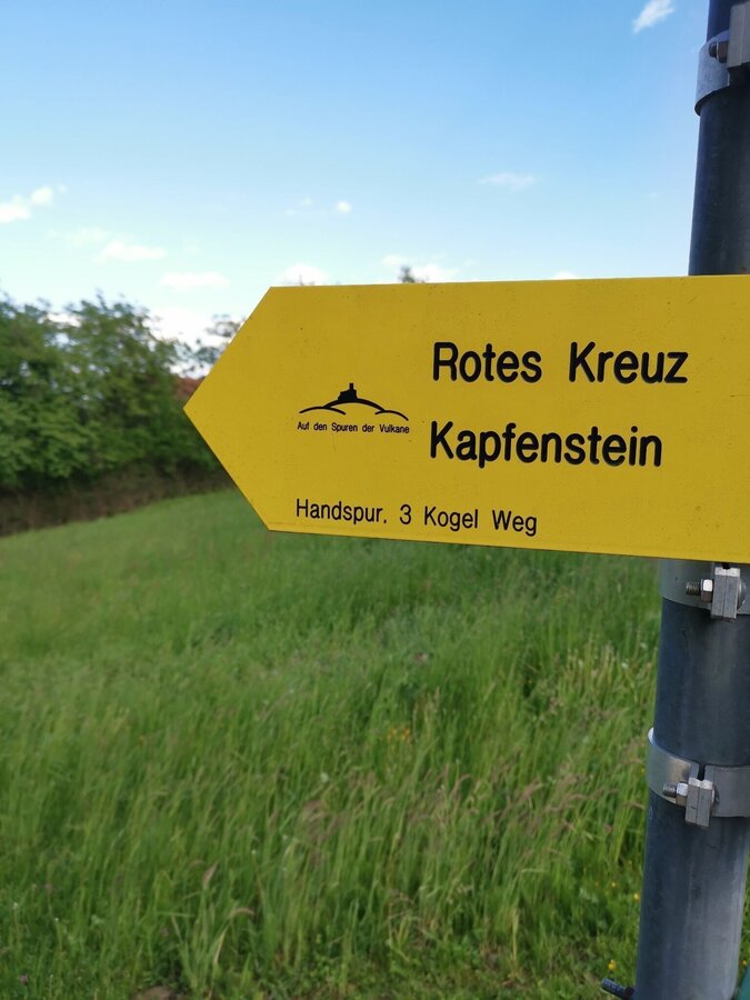 We start the hike at the parish church in Kapfenstein, to the Handspur. Via the Handspur we first go down the steep slope of the Tuffschlots towards Bad Gleichenberg and later via Streuobstwieden to the country road. After crossing the road, the trail leads us along small side roads and forest paths, between vineyards and elder plantations to the Gleichenberger Kogel. At the Trassstein quarry we reach the backbone, which leads us south through the woods of the Gleichenberger Kogel, past the Mühlstein quarry to Bad Gleichenberg.