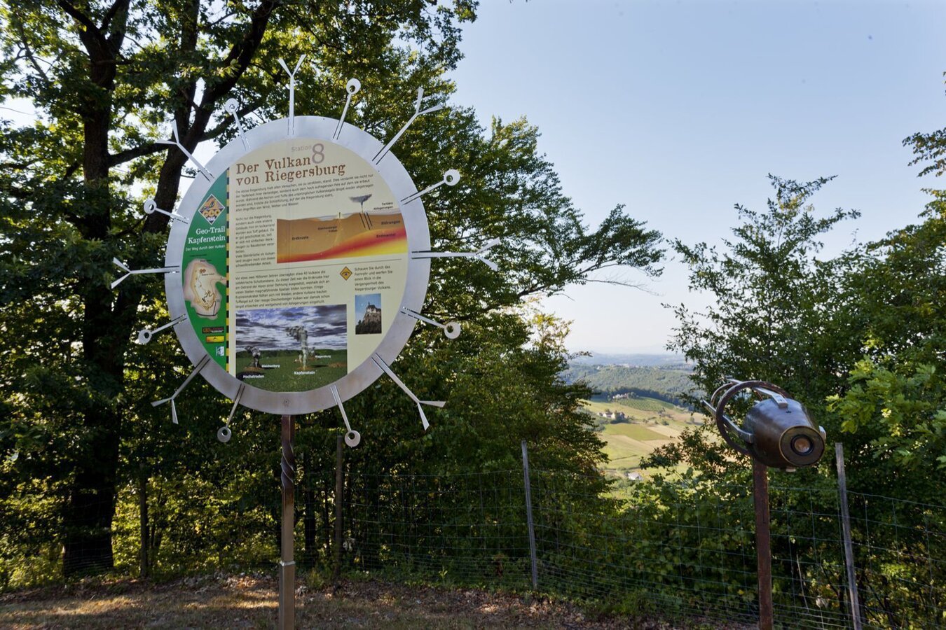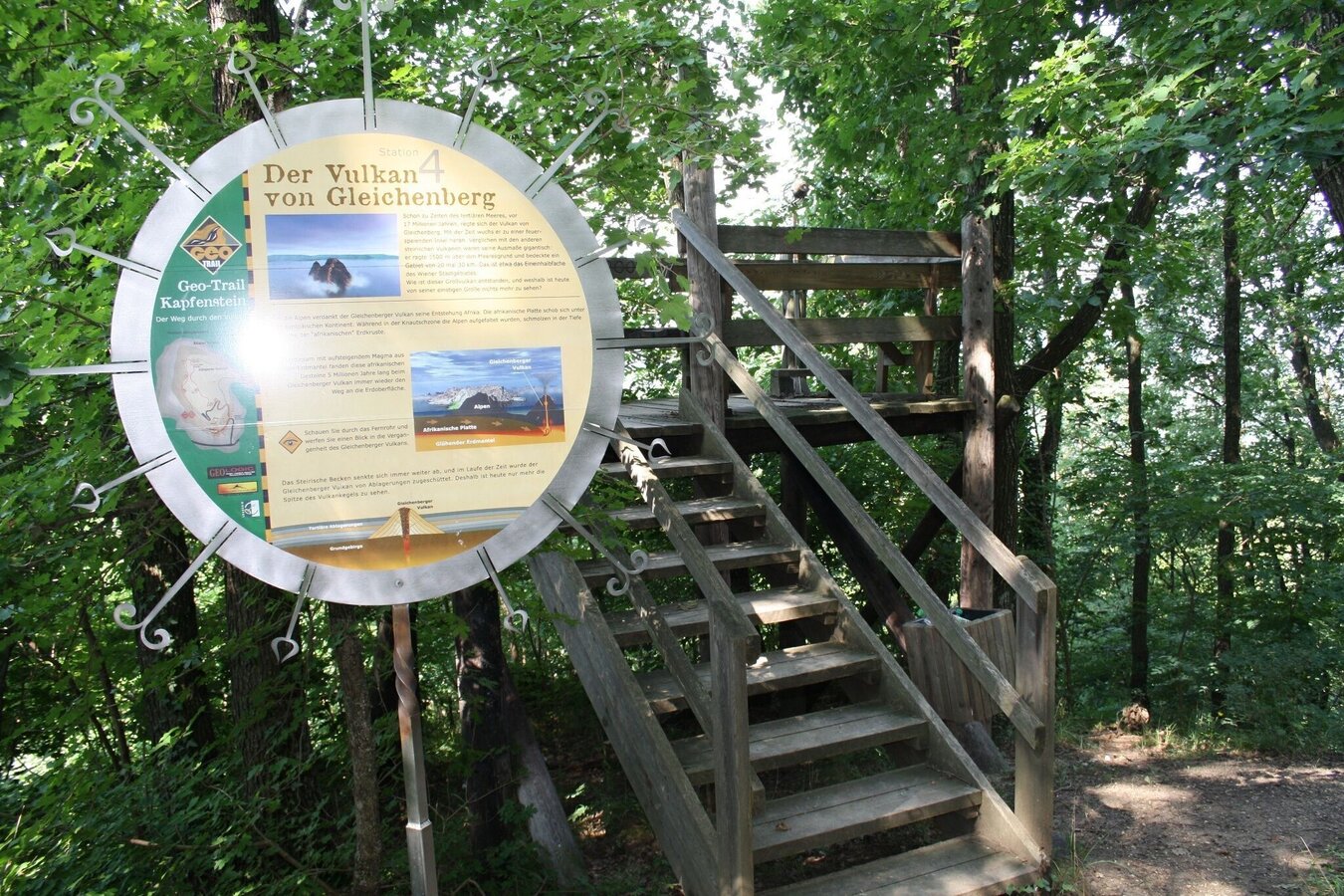 Stations along the GeoTrail: 1.a volcano is formed2.the volcano of Hochstraden3.the vent of the old volcano4.the volcano of Gleichenberg5.at the edge of the new crater6.the volcano as a builder7.the volcano through the microscope8.the volcano of Riegersburg9.the vent of the younger volcano10.noble stone from great depth11.the eruptions